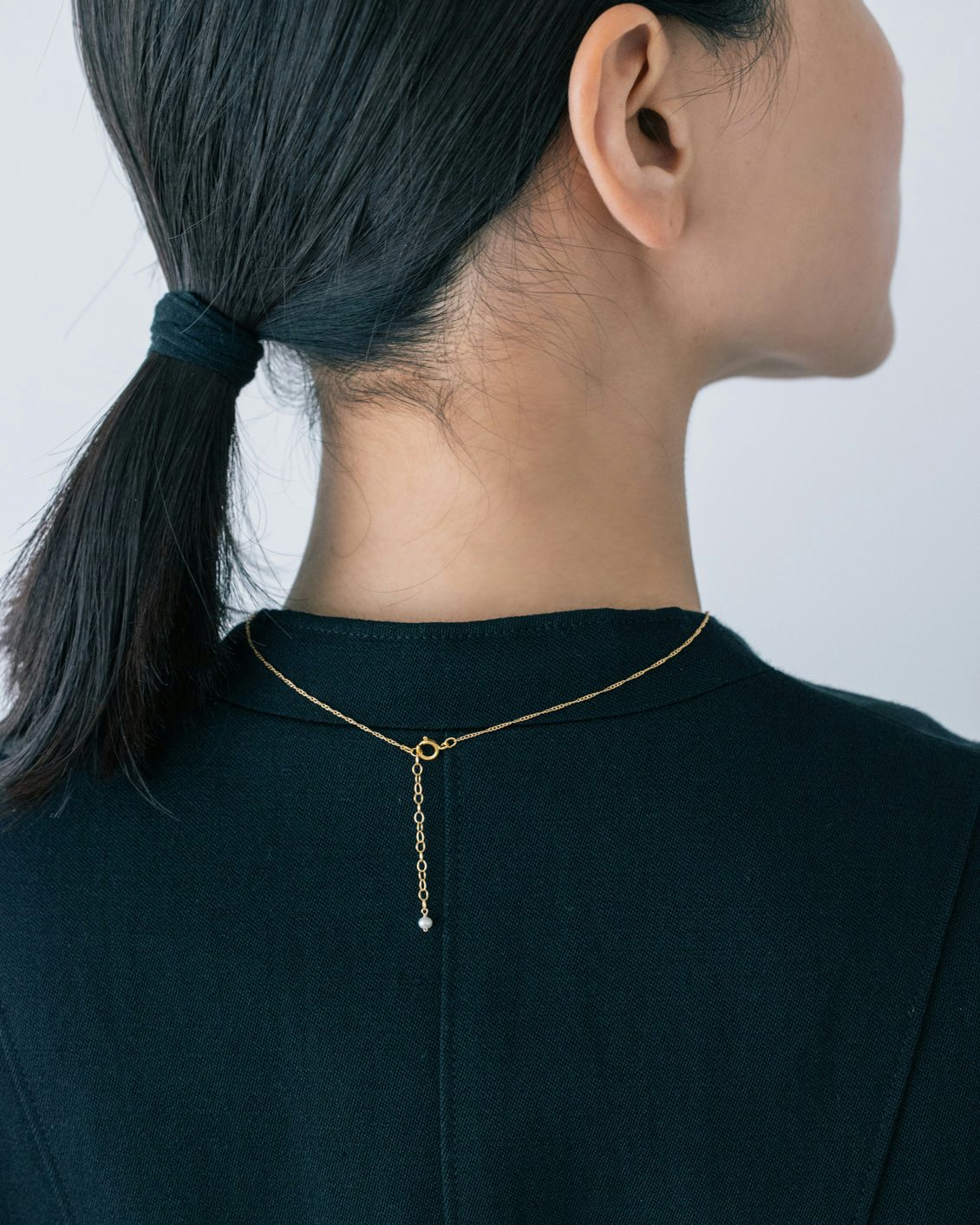 チェーンの先に一粒パールをあしらうことで、ふと見える後ろ姿も華やかに見せてくれます。