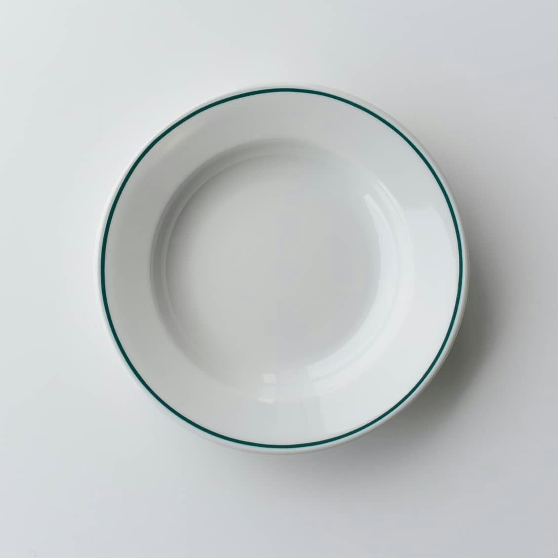 余白ある佇まいの中にスッと引かれた緑のラインが、程よいアクセントになって、料理を引き立ててくれるんです。