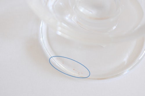 ・こちらのクリアのグラスは製造工程上、グラスとテーブルの接地面に極小の茶色っぽい「点」が見られる場合がございます。