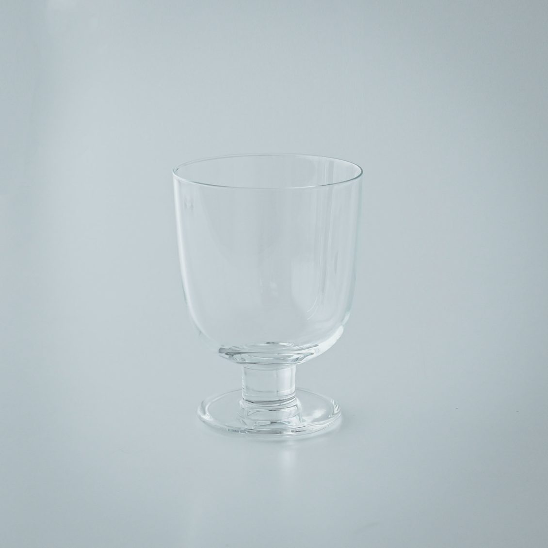 この脚付きグラスは、元々ワイングラスとして作られたものではないから、脚の部分が短く、細すぎないんです。