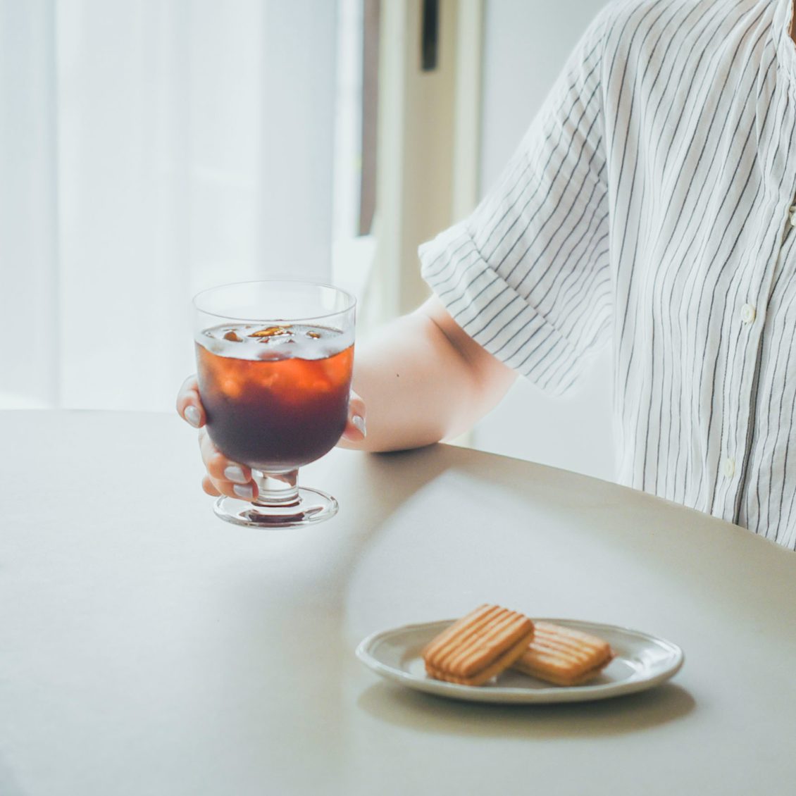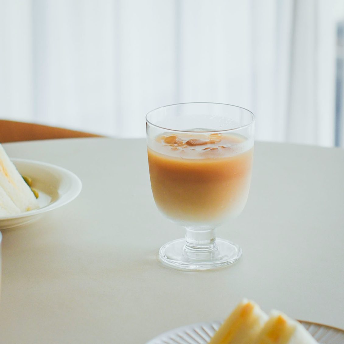 いつもの飲み物も、脚付きグラスに注げば、なんだかちょっぴり特別な気分。
