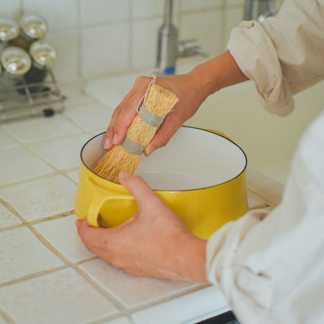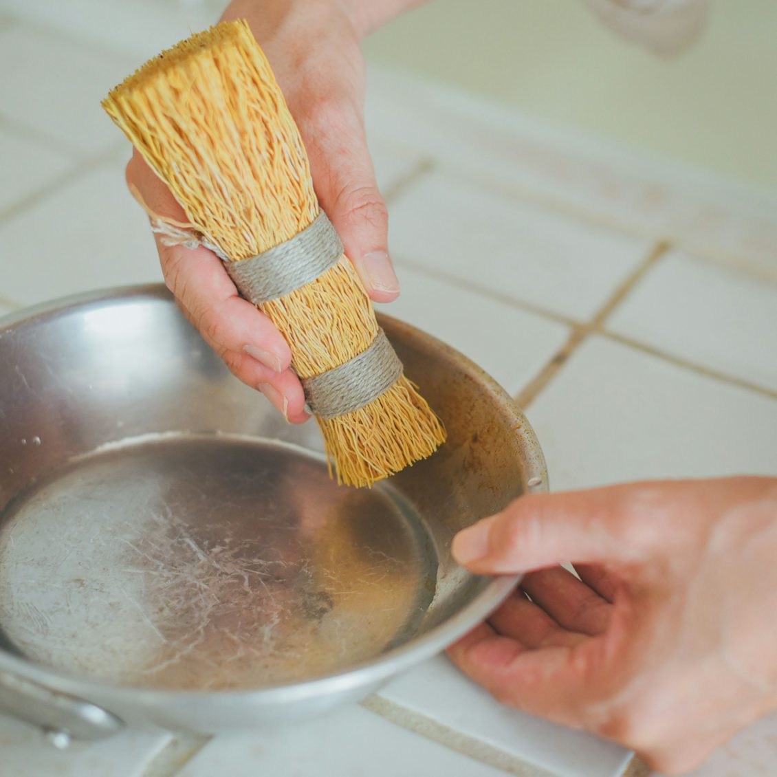 ヨーロッパ原産の低木・エニシダの根を束ねた鍋洗い。