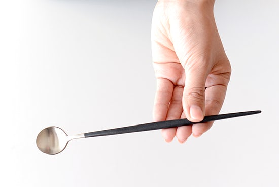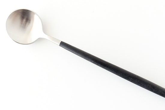 こちらは、長さ約21cmのロングドリンクスプーン。樹脂製の持ち手はマットな質感で、手にすっと吸い付くような触り心地。