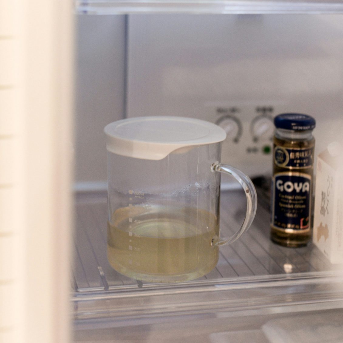 だしを一度に使い切れなかったときも、大丈夫。付属のフタをすれば、ポットのまま、冷蔵庫に保存もできます。