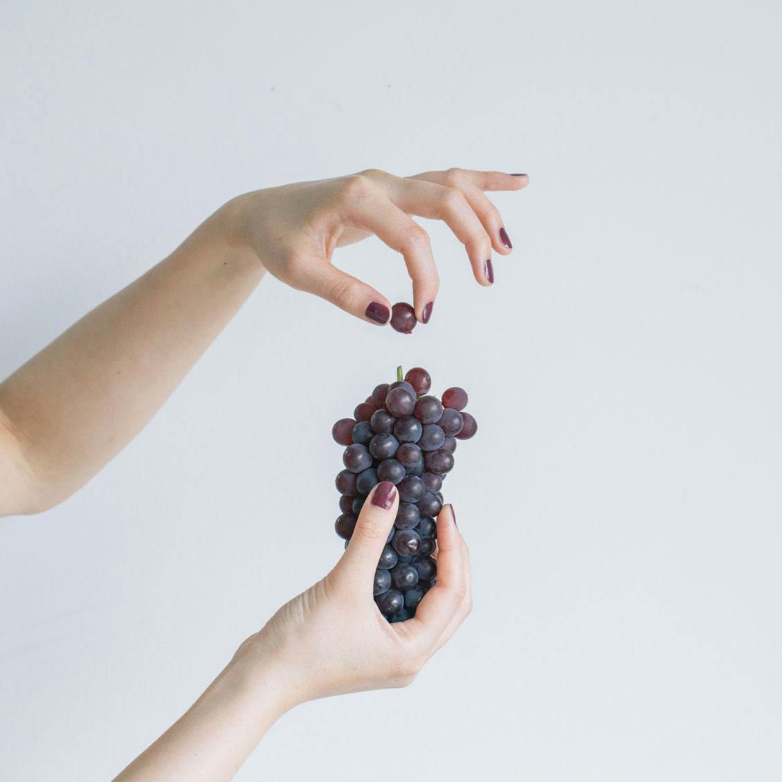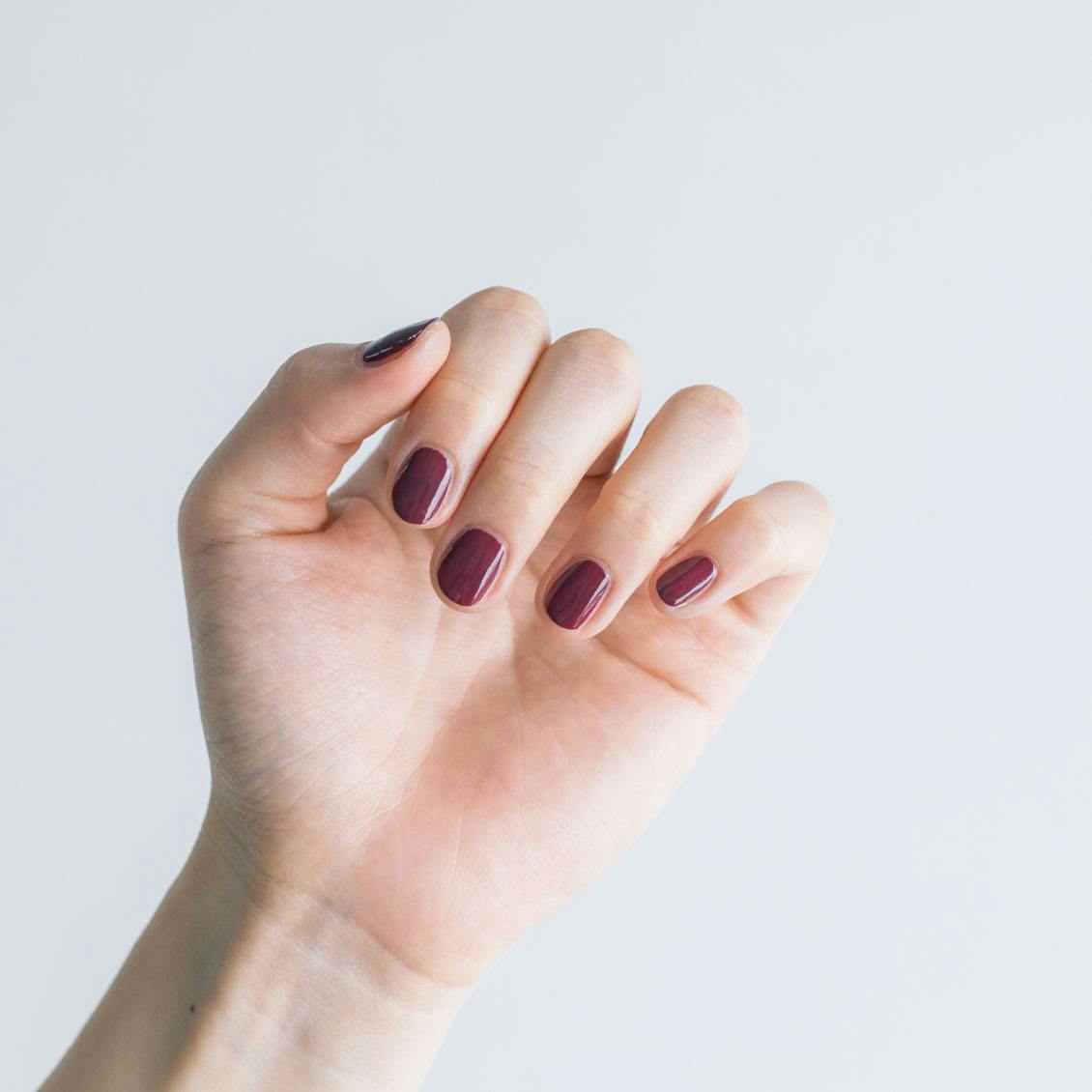 ぶどうのような深い紫色。ツヤ感のあるネイルだからこそ重たくならなず、ぐっと大人な印象に。