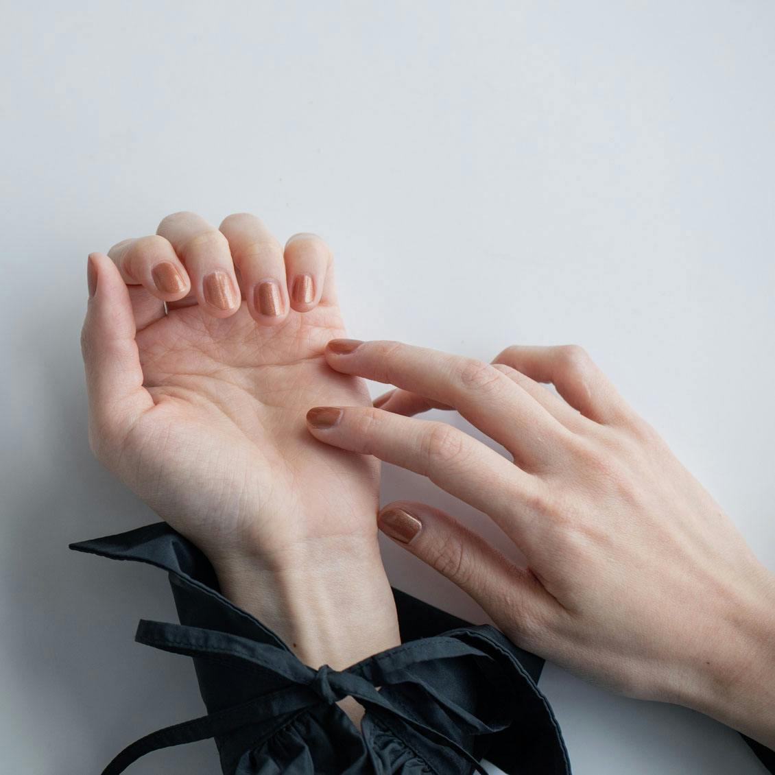 1度塗りでもきれいですが、2度塗りすると、程よく手元が華やぐシックな「ブロンズ」に。