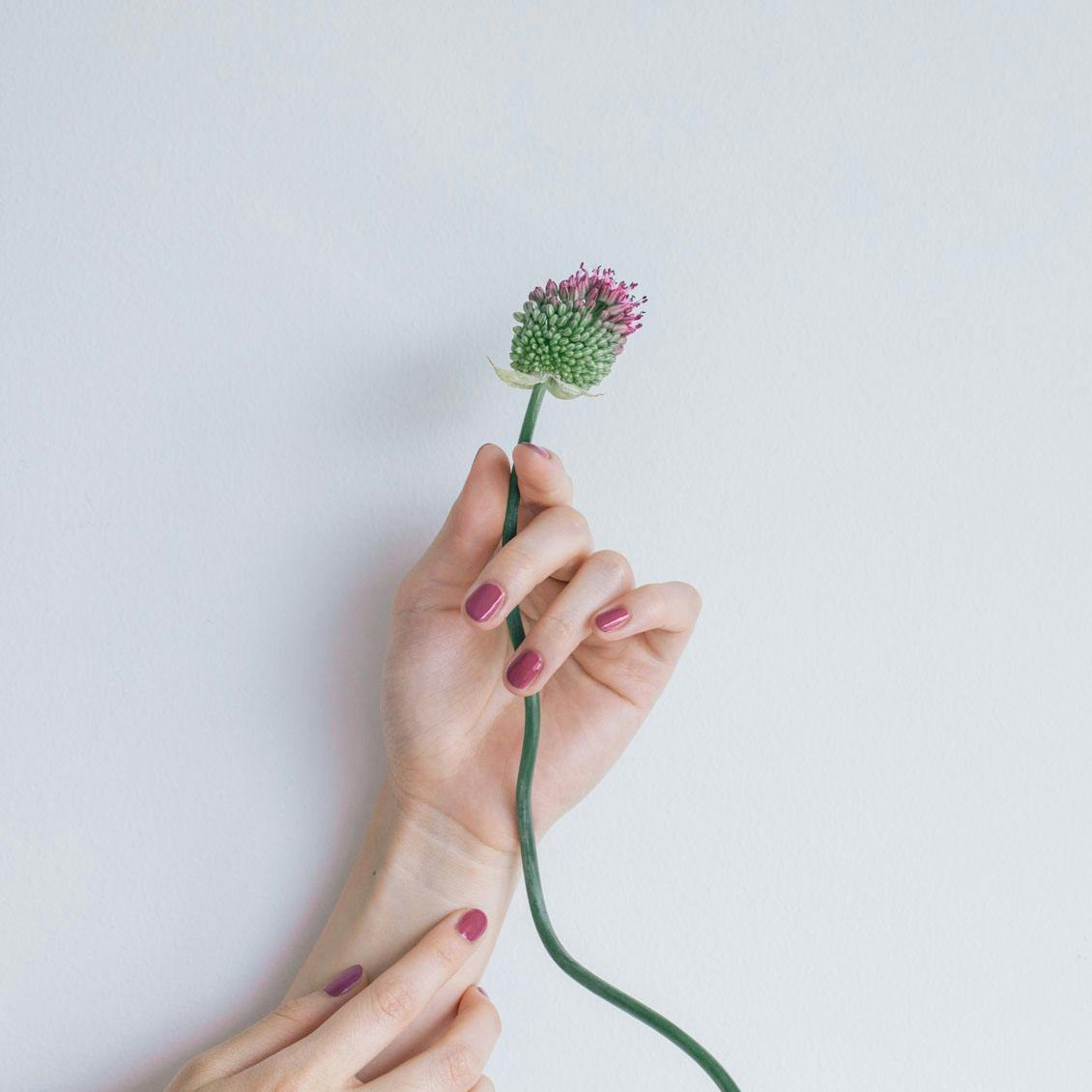 グレイッシュな、落ち着いた大人の「くすみピンク」。パープルのようなニュアンスもあり、さっとひと塗りで、なんだかおしゃれな手元に。