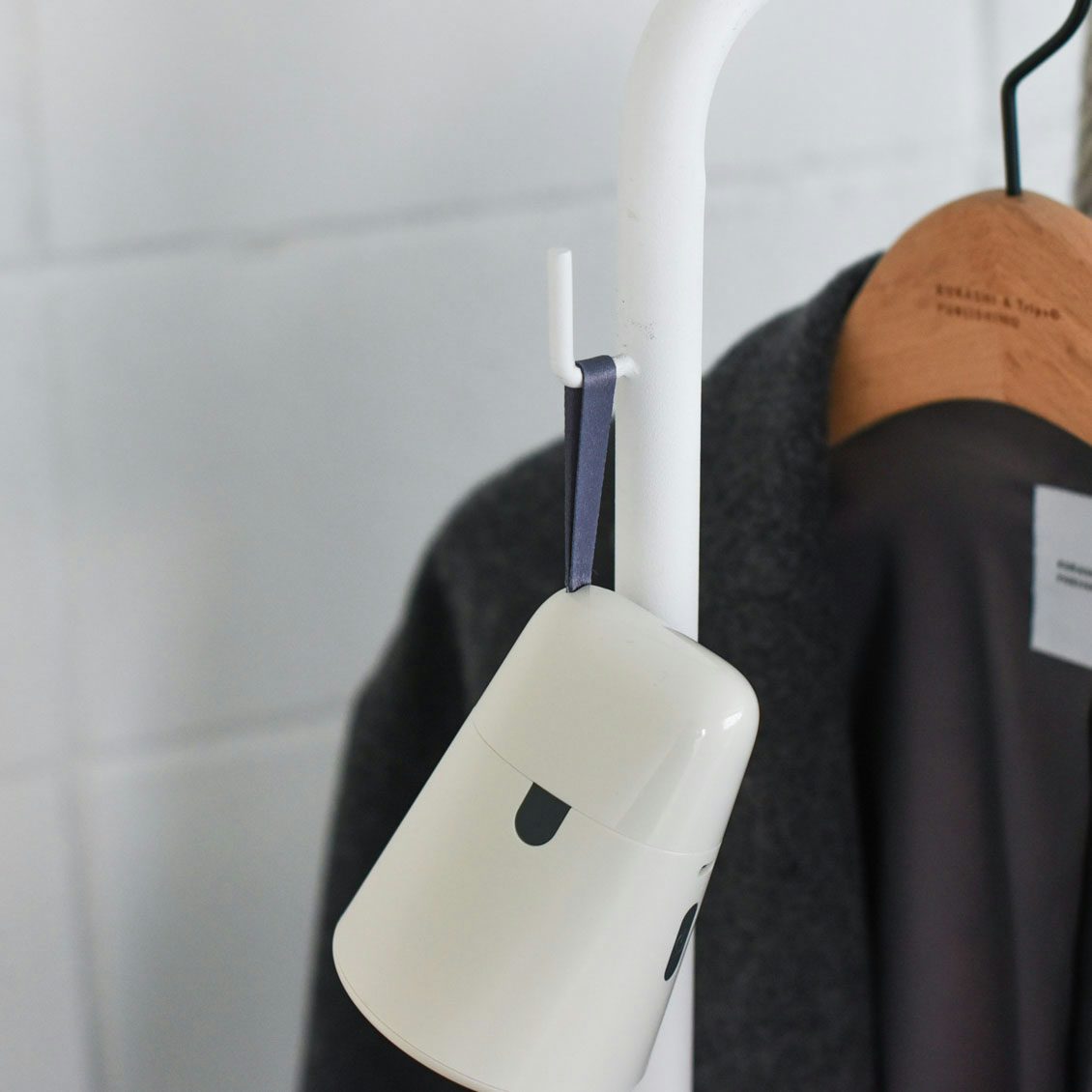 ストラップ付きだから、フックにかけたり、クローゼットのポールにS字フックをつけてかけたりも。