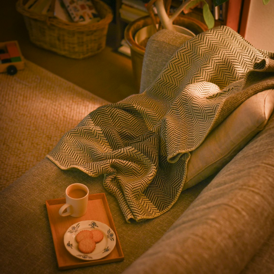 「わが家になじむ冬じたく」ヘリンボーン柄のやわらかブランケット