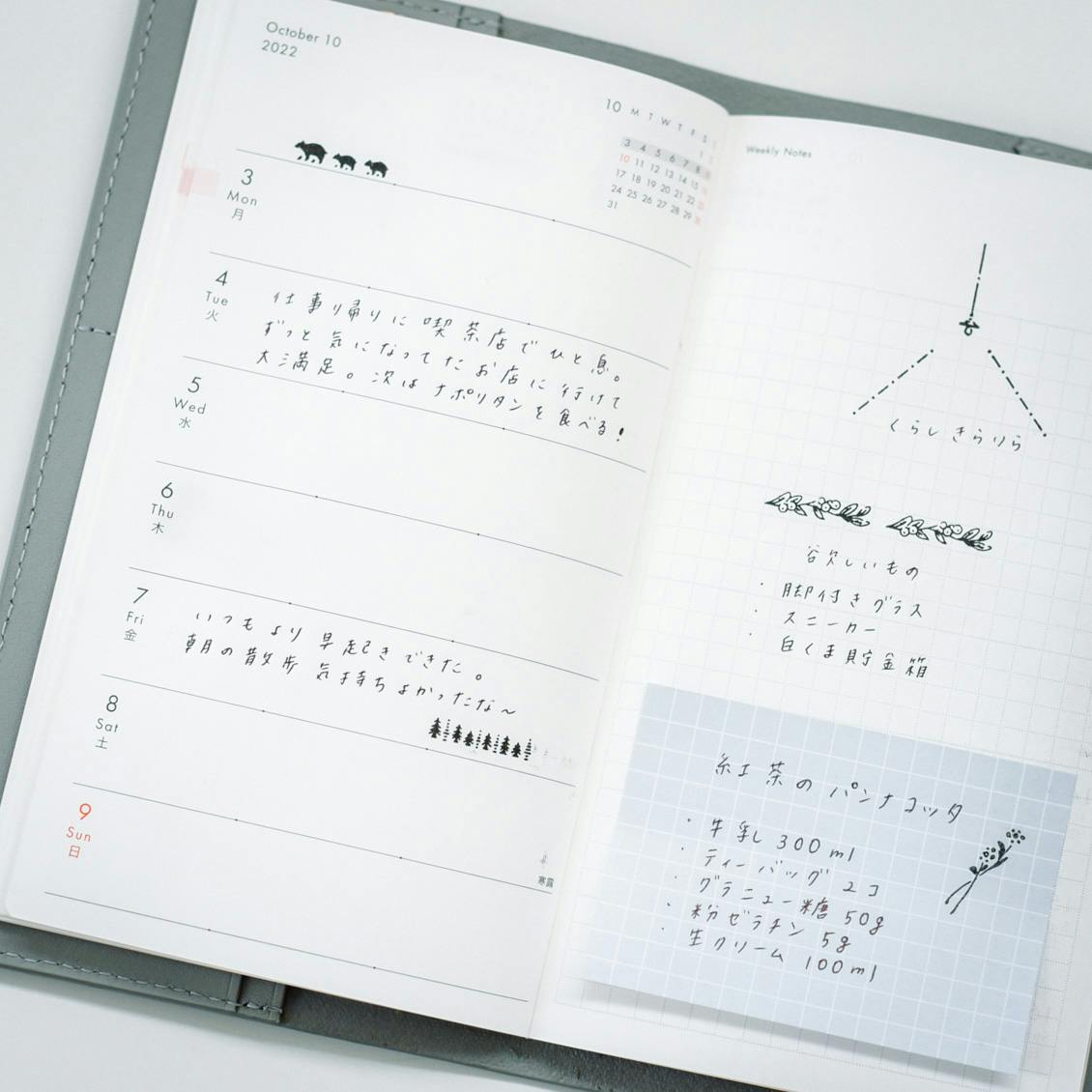 スケジュールを書き込んだり、短い日記を綴ったり、やりたいことや気になる言葉を書き留めたり。手帳を書く時間は、自分だけの特別なひととき。