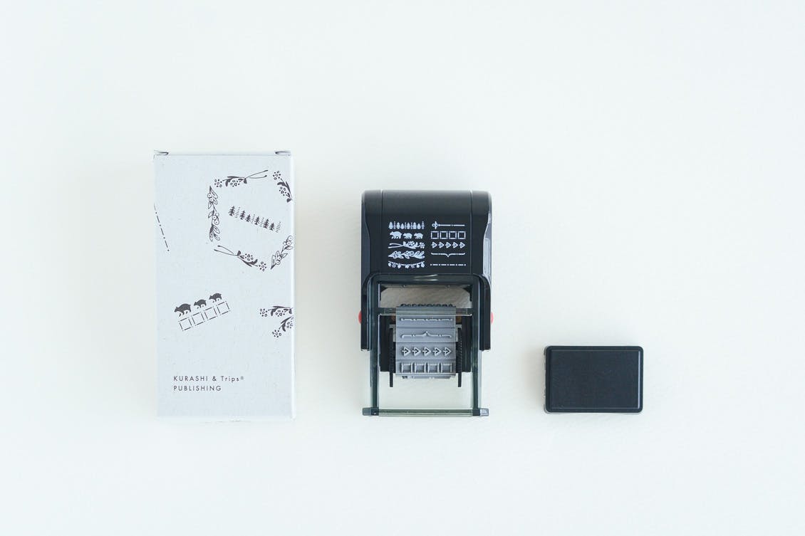 ・スタンプ本体、インキパッド、取扱説明書が付属します。