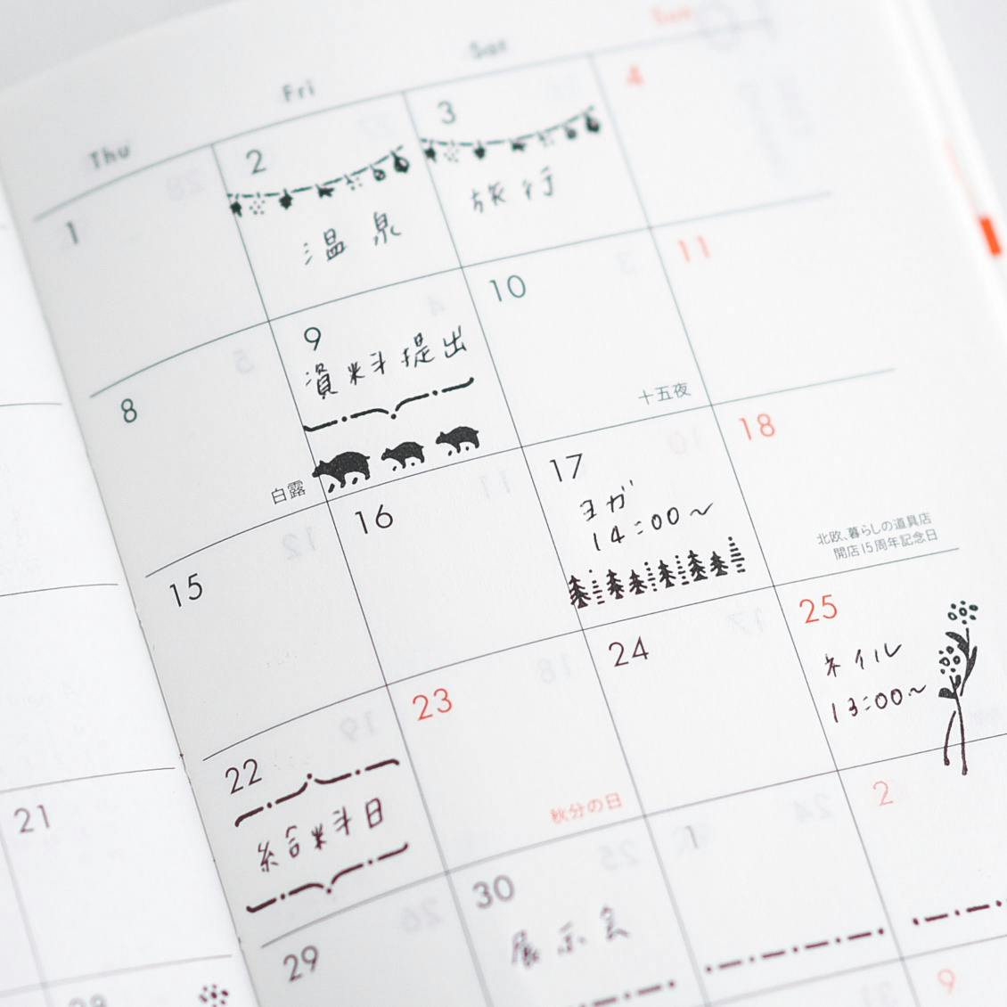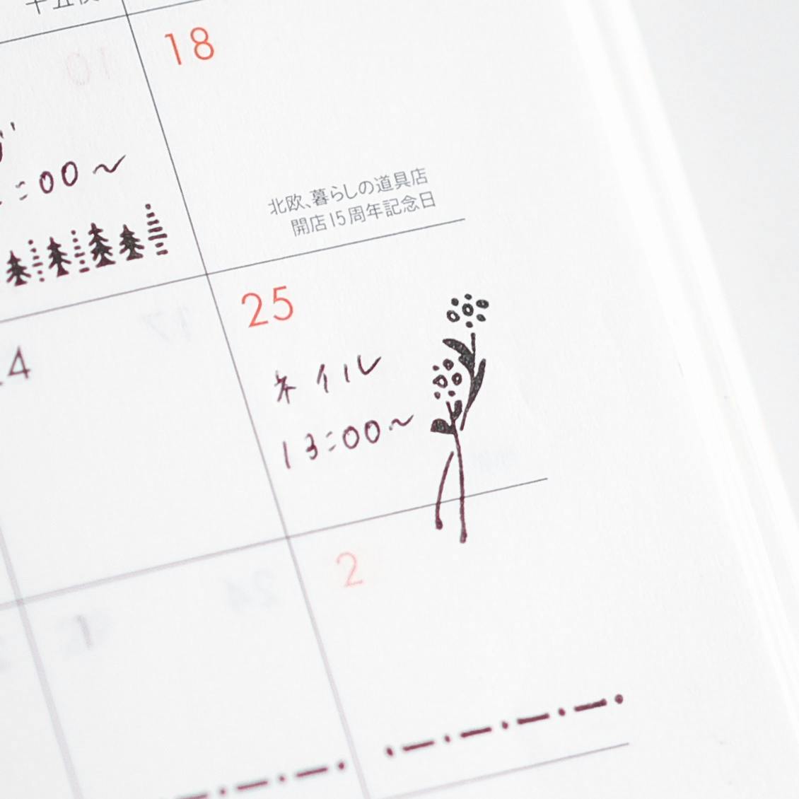 何気ない日にも、ちょっぴり特別な日にも。小さなスタンプがささやかな彩りを添えてくれるから、手帳を開く時間がより楽しみになりそうです。
