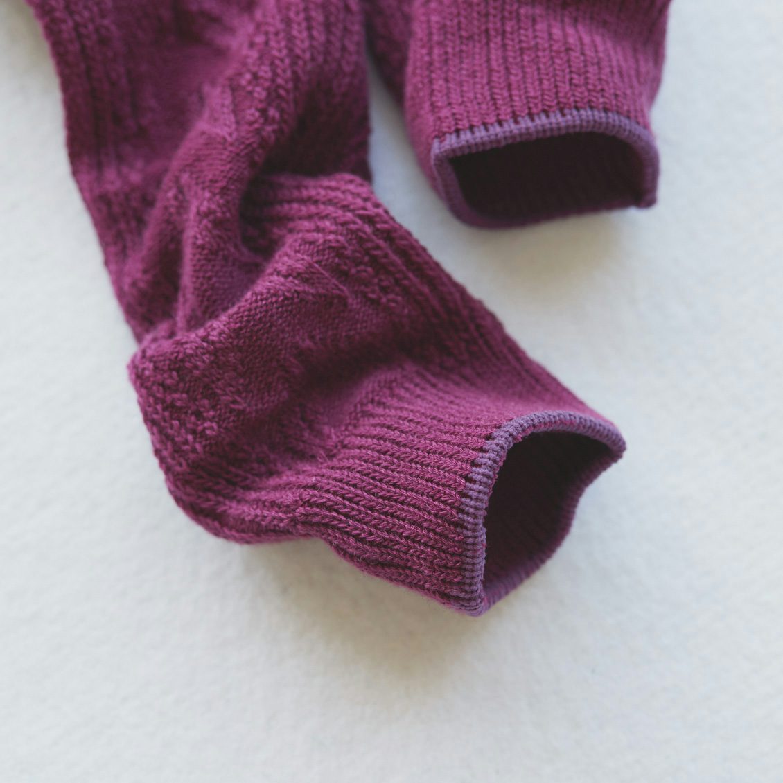 模様の立体感とすっきり見えの両方が叶えられるように、編み柄にとことんこだわり、試行錯誤を重ねました。