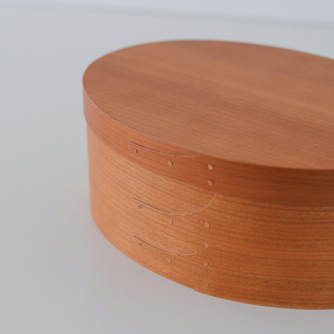 シェーカーボックスとは薄い木材を曲げて作られる、シンプルなオーバル型の木箱。