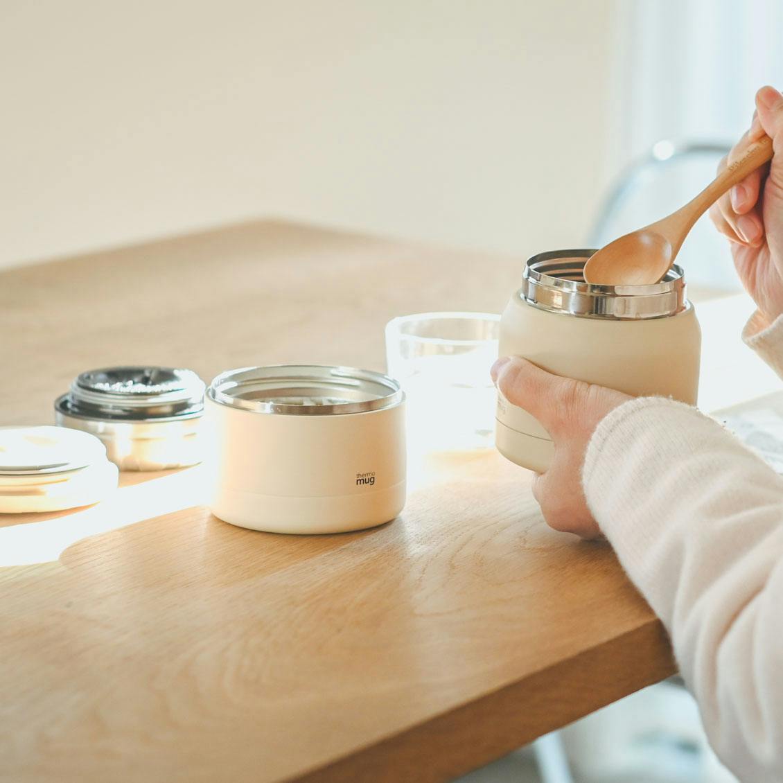 その特徴を活かして、熱さや冷たさを保ちたいスープなどは「ミニタンク」、程よいあたたかさや冷たさにしたいごはんやおかずは「フードコンテナ」 に入れて組み合わせるのがおすすめなんです。