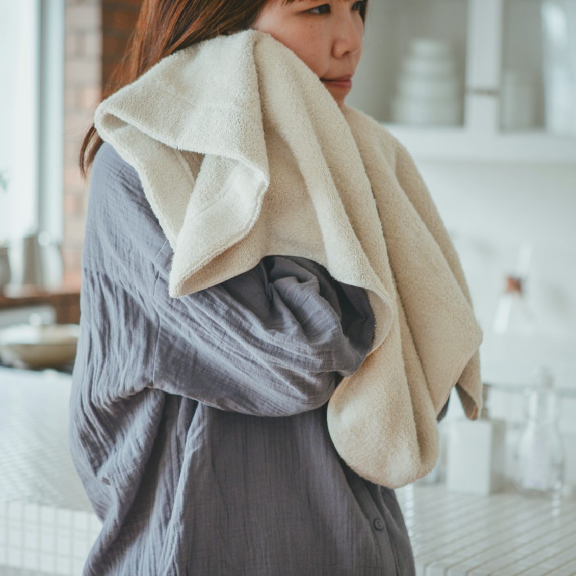 トントンと肌を押さえるだけで十分に拭き取れるので、肌に優しく、ふかふかのタオルに包まれる時間はとっておきのリラックスタイムになりそうです。