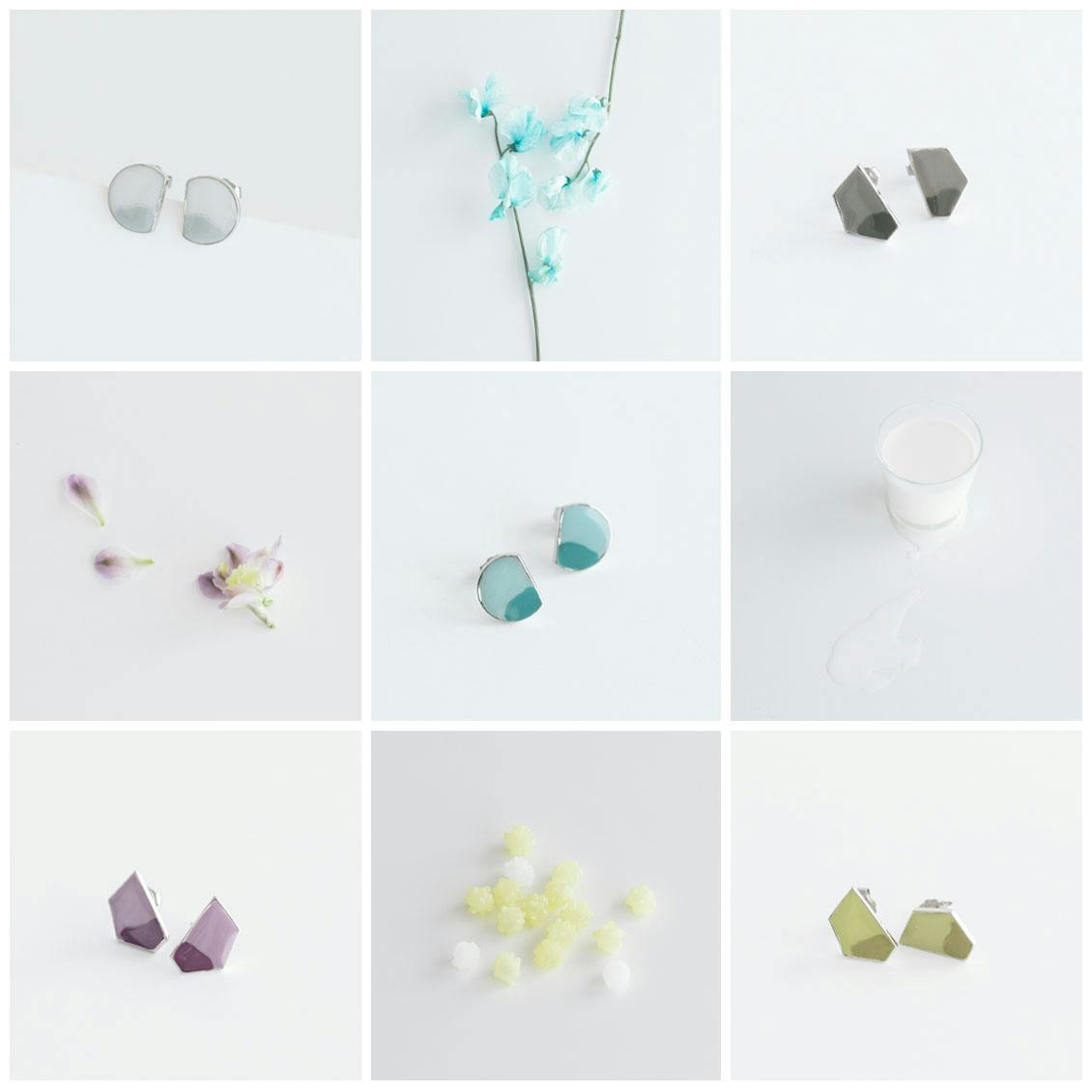 | 重量g(約) | 【ペールホワイト、ブルーグリーン】ピアス1、イヤリング 2.5 【シトロンイエロー、ライラック、チャコール】ピアス 1、イヤリング 2 |