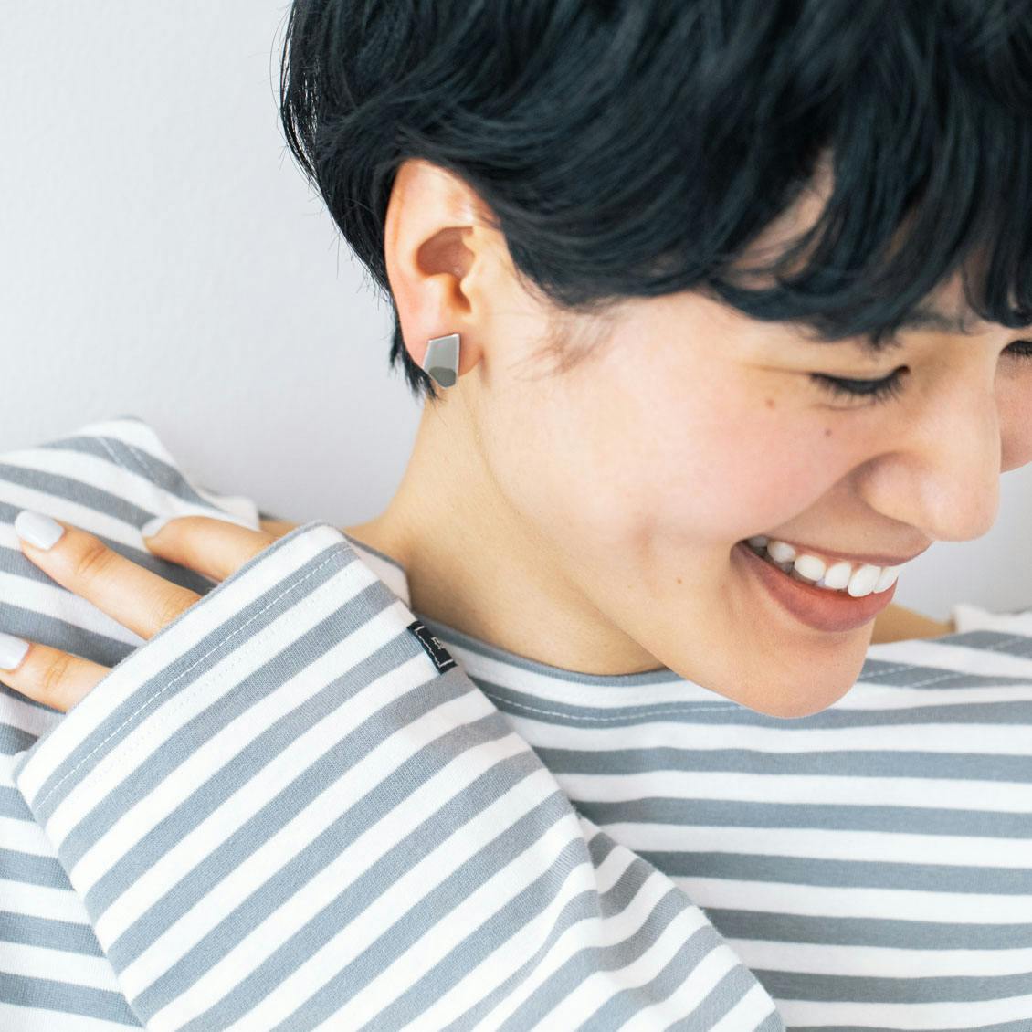 本体とイヤリングの金具はニッケルフリーの素材、ピアスの金具にはチタンを採用しています。