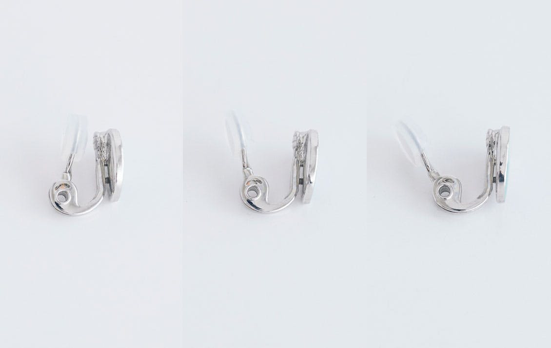 イヤリングは、金具の開閉具合が調節可能な仕様。