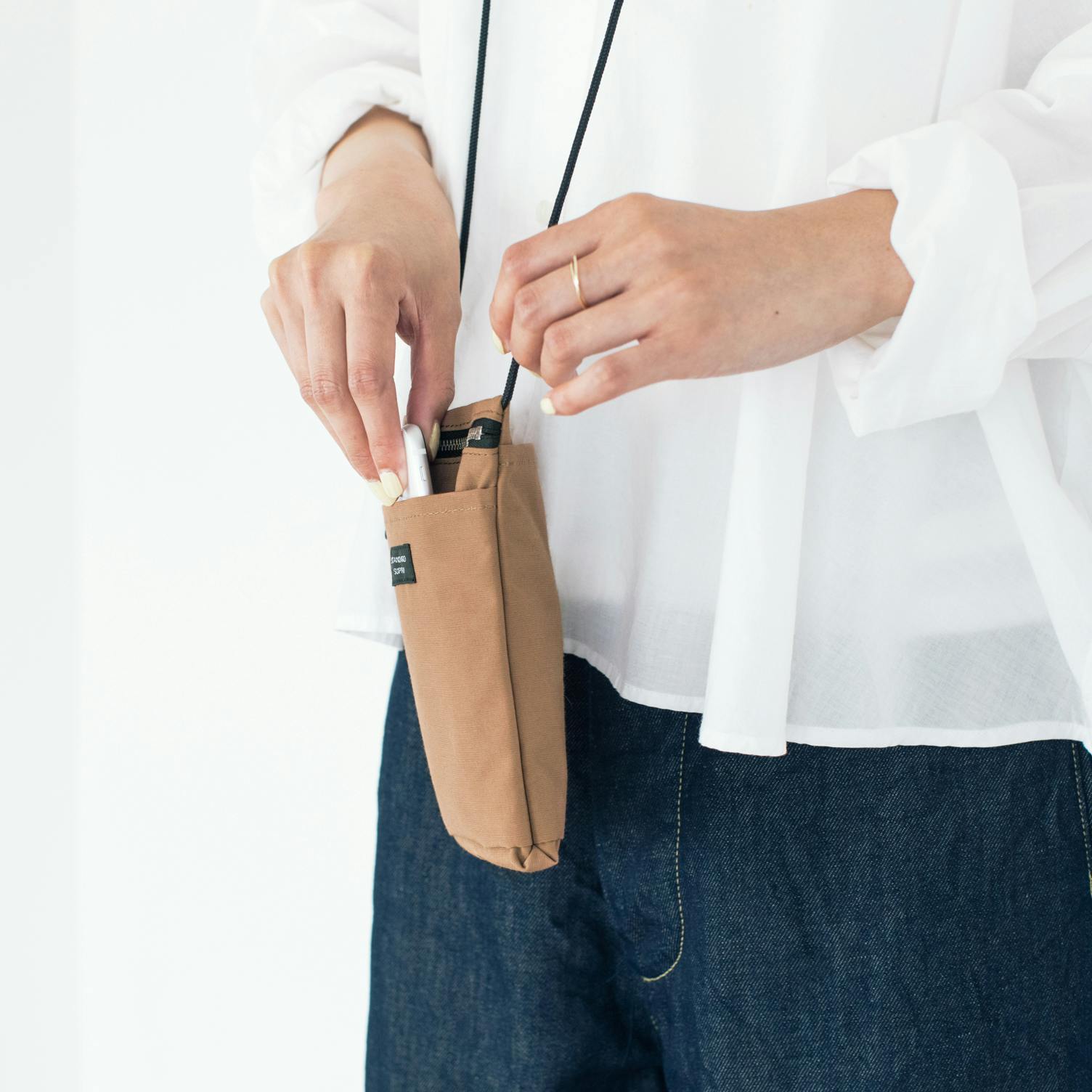 暗めの洋服ならケース部分が、明るめの洋服なら首ひもが映えて、コーディネートのポイントになるカラーです。