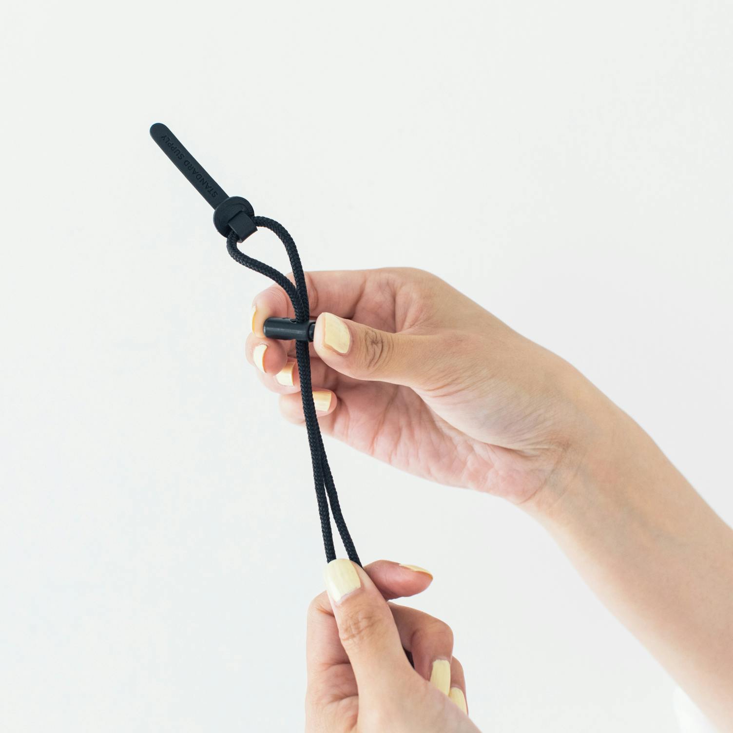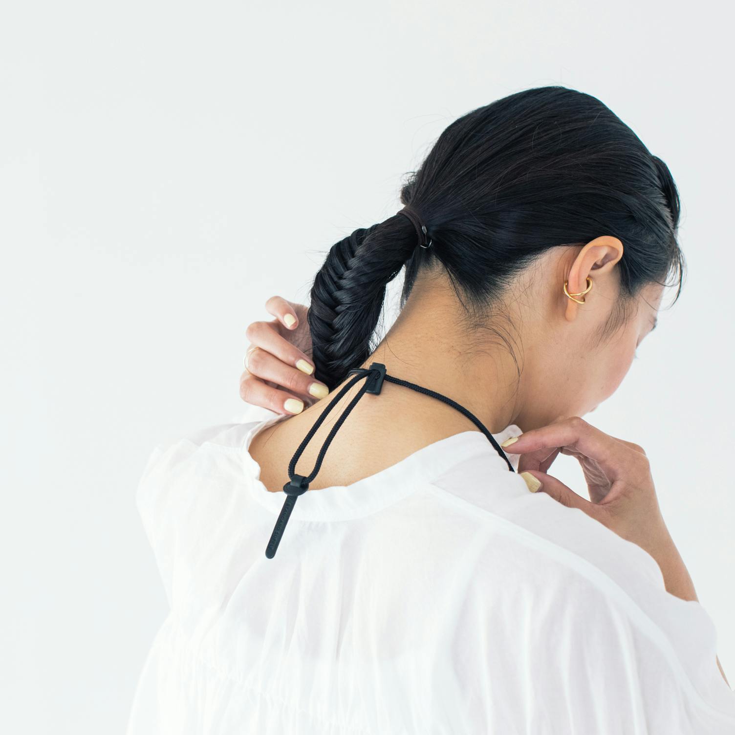 首ひもにはストッパーが付いているので、長さ調整が簡単。