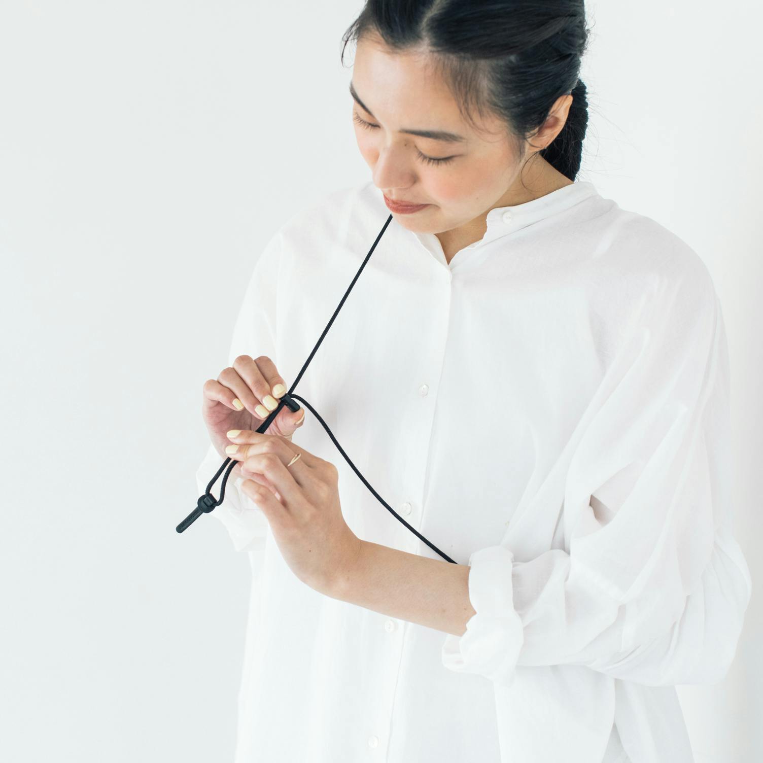 動く時には短くして邪魔にならないようにしたり、コートの上から掛けたい時は首ひもを長くして。