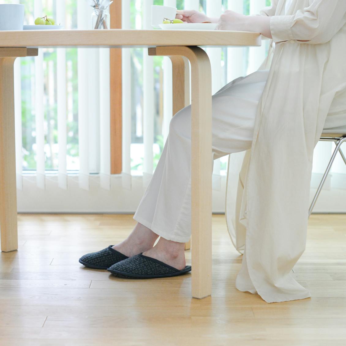 このスリッパの一番の魅力は、素足で履いたときの気持ちよさ。