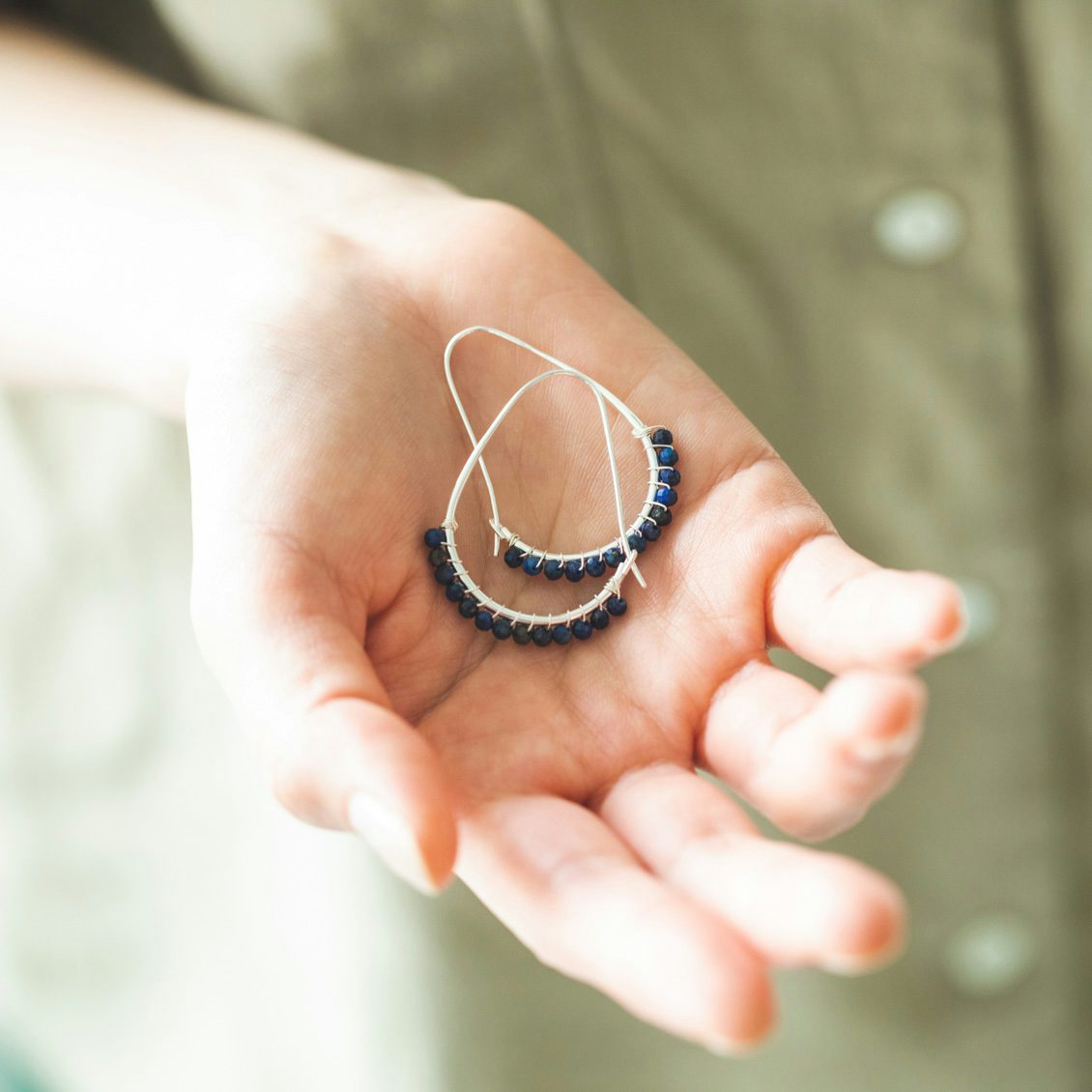 さりげなく煌めく天然石とシルバーで、身につけるだけで顔周りがパッと華やいだ印象に。