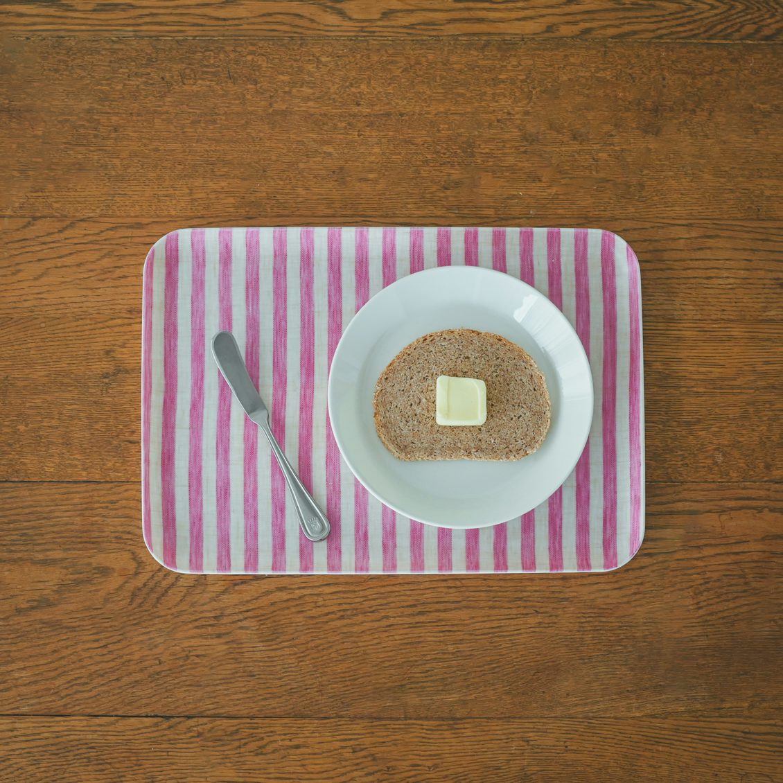 食卓をパッと明るくしてくれそうな、イエローのストライプ。少しオレンジがかった優しい色合いです。