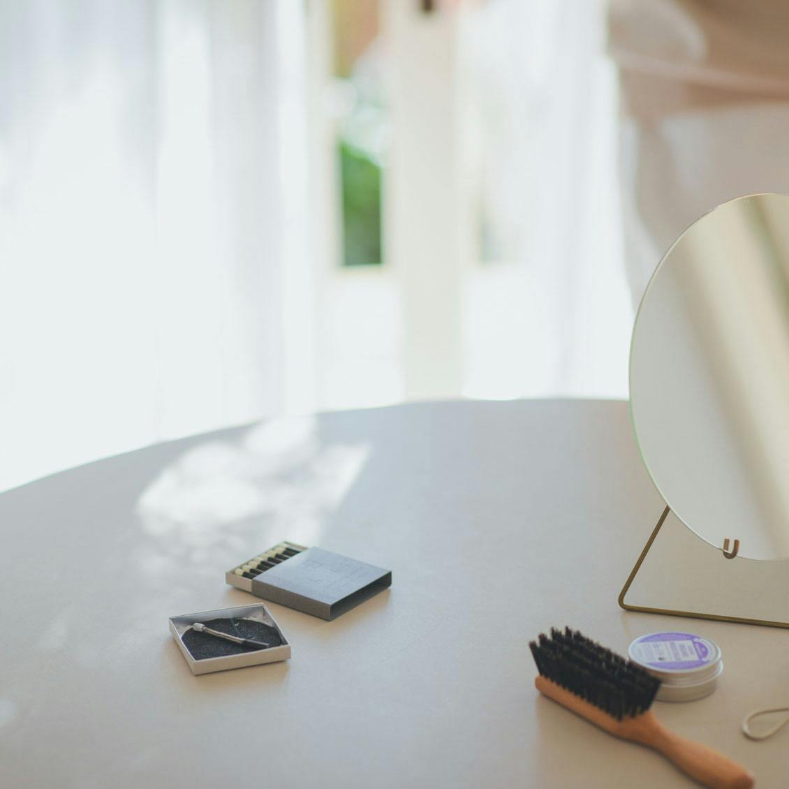 ちなみに、マットトレイごとであれば、陶器の小皿などにおいても大丈夫です。お気に入りのお香スペースを作ってみてもいいですね。