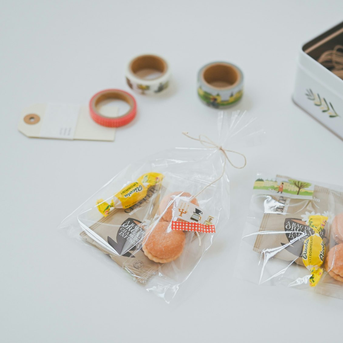 袋にペタっと貼るだけで、かわいいラッピングの完成。
