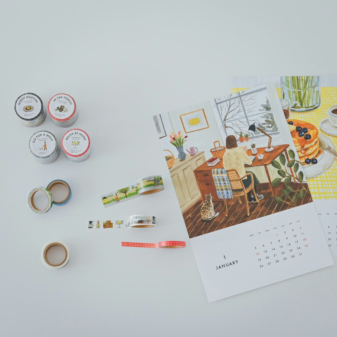 「ささやかに、憧れの暮らし」をテーマに、等身大の日常から半歩先を眺めた、理想の生活を描いた小池ふみさんイラストのカレンダーも発売中です。ぜひ合わせてご覧ください。