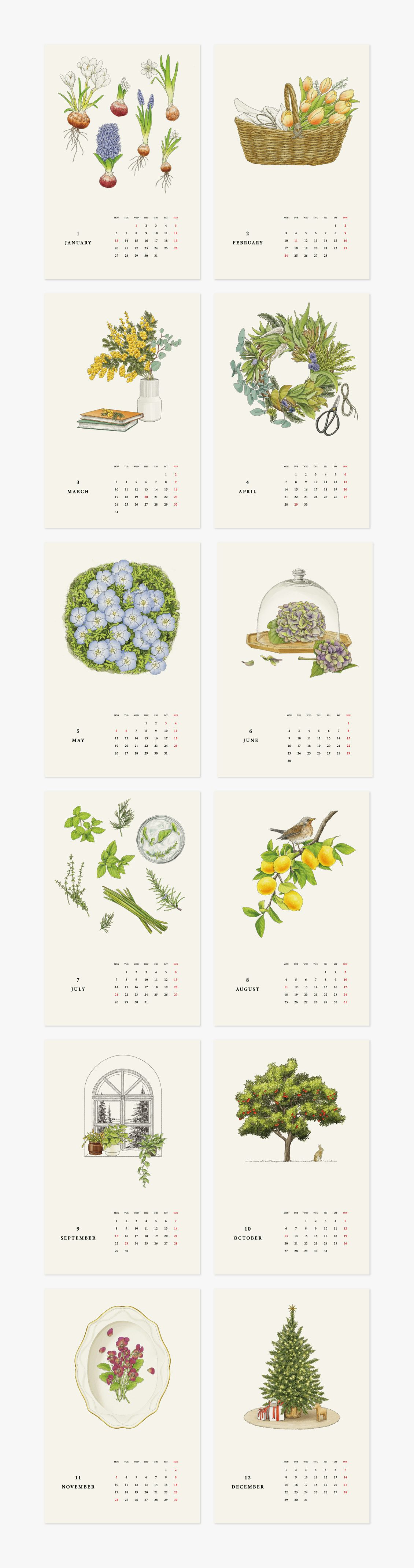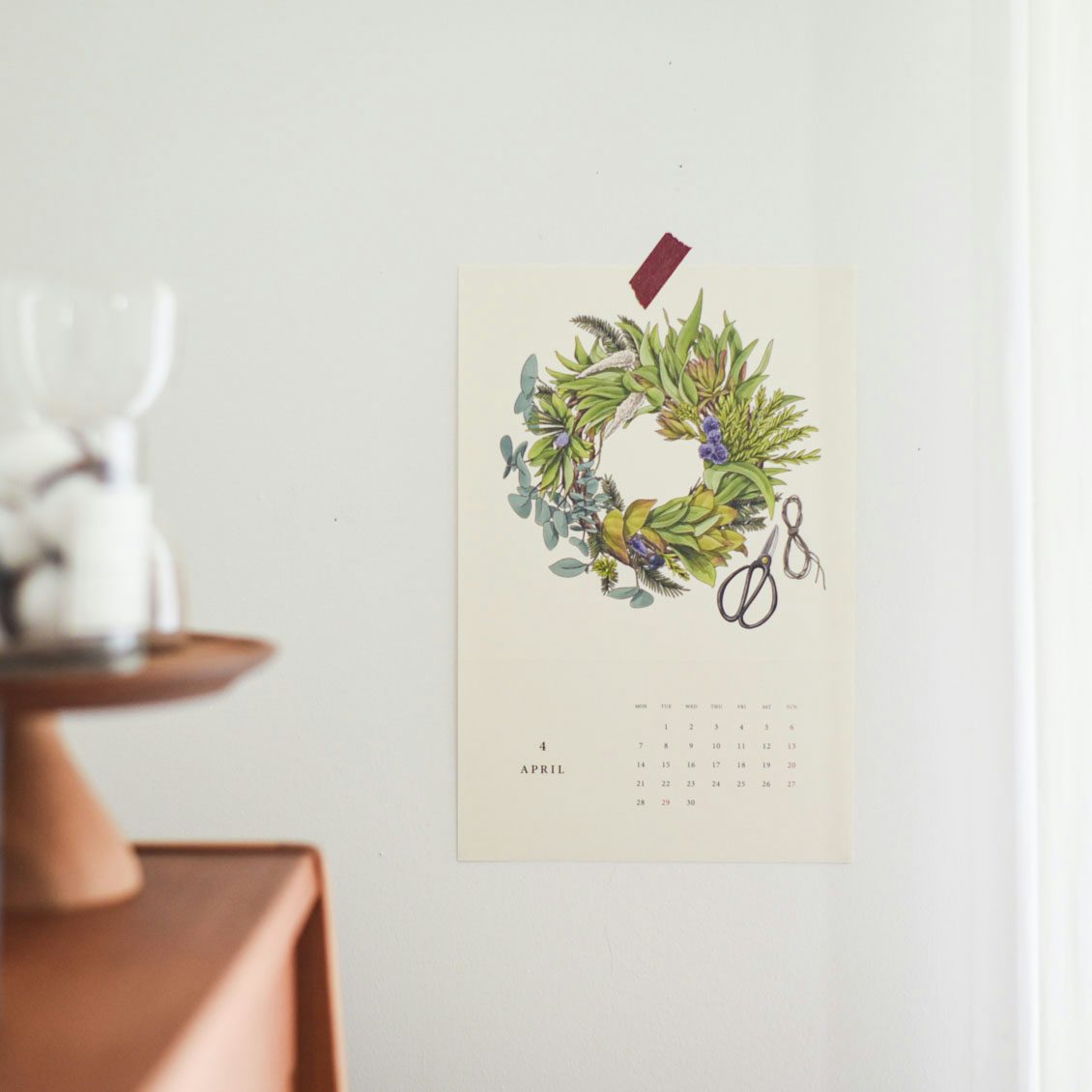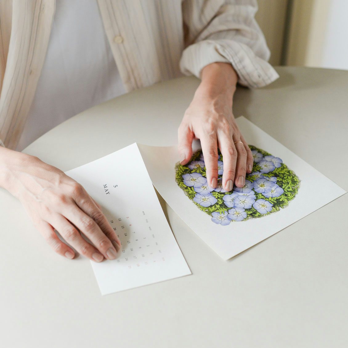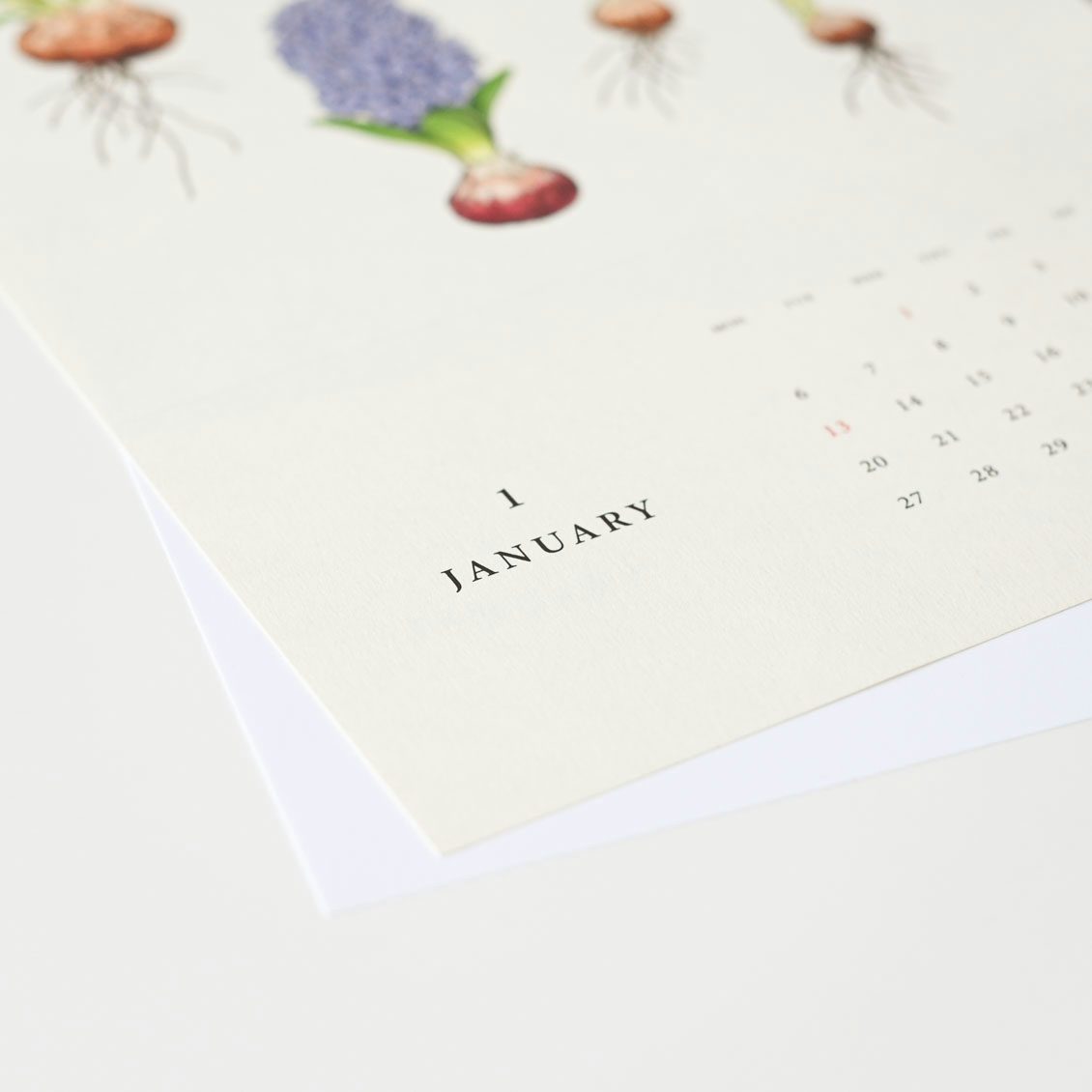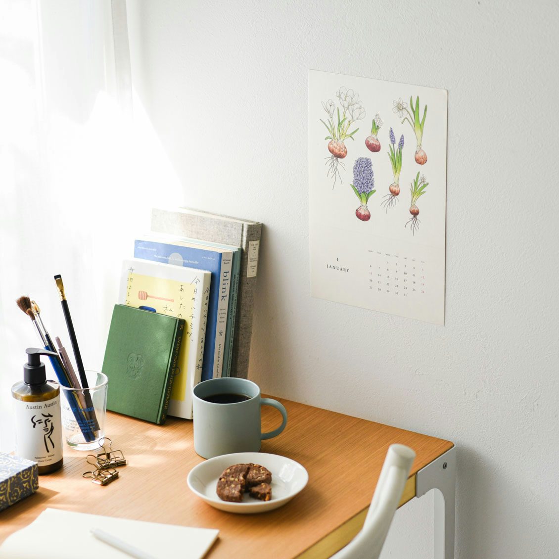 まるで図鑑のような繊細なタッチが魅力の、花を飾るように楽しめるカレンダーです。