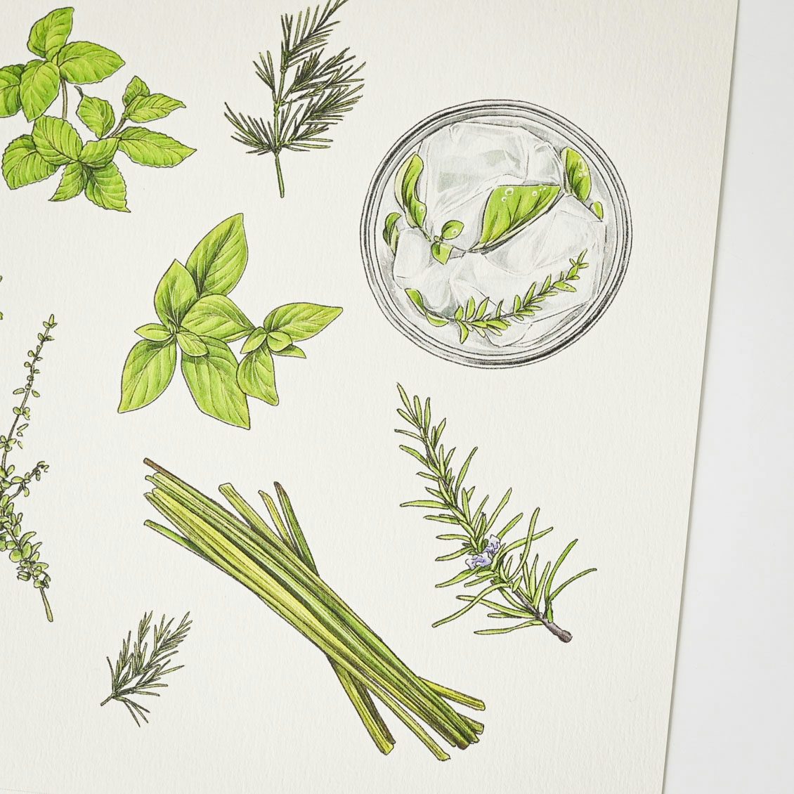 miltataさんならではの繊細なタッチで描かれた植物は、まるで蚤の市で見つけたヴィンテージ図鑑のよう。