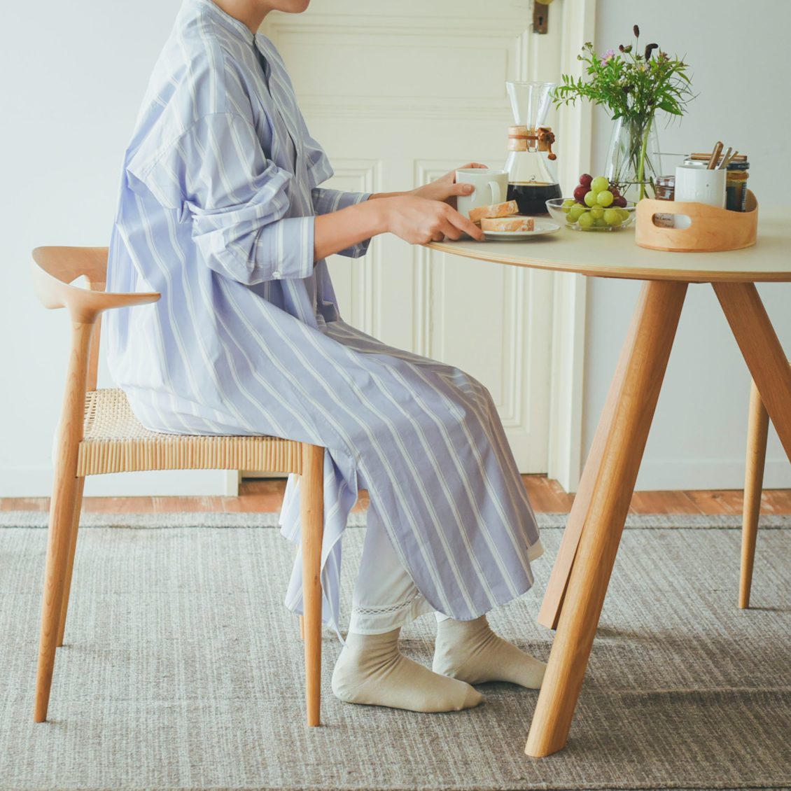 普段着にもしっくり馴染むデザインだから、室内ではもちろん、そのままお出かけにも使えます。