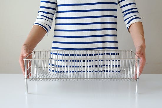 ごっちゃりとしがちな水切りかごですが、これならキッチンの傍に置いてあっても、なんとなく気持ちが良いくらいです。