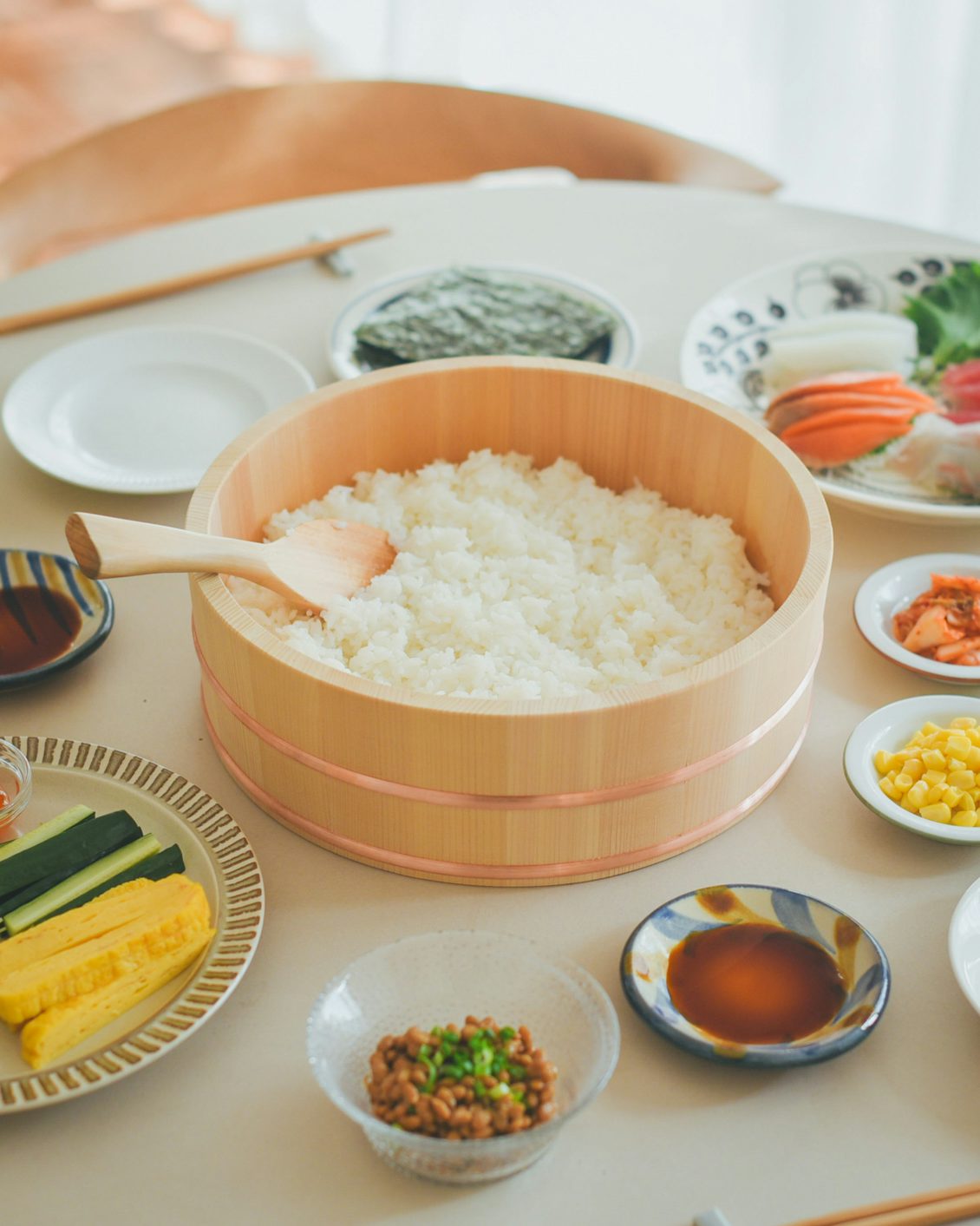 見た目の華やかさはもちろん、調湿効果で酢飯をおいしくしてくれる飯台は一家に一台あるとうれしい、暮らしの道具です。