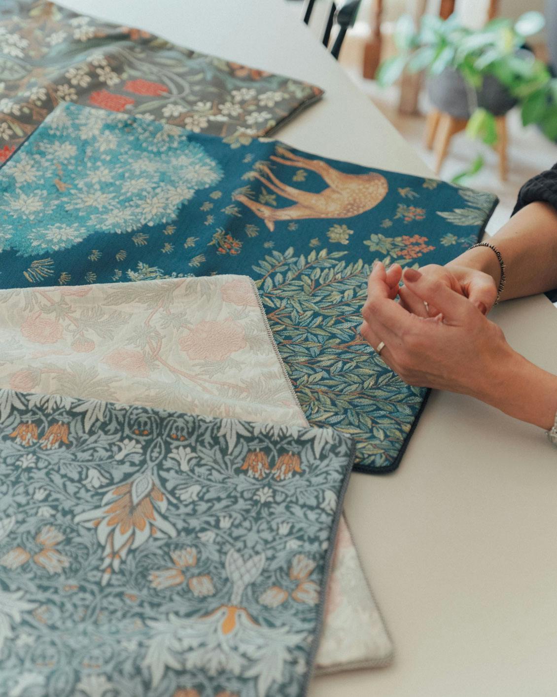 「ウィリアム・モリスのデザインは、以前インテリアデザインの会社にいたときに触れていたり、カントリー調のインテリアが好きな母の愛読書を読んで育ったこともあり、昔からそばにあった存在でした。