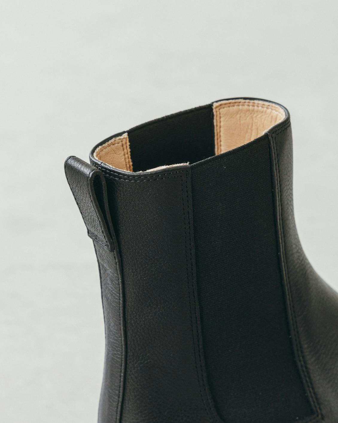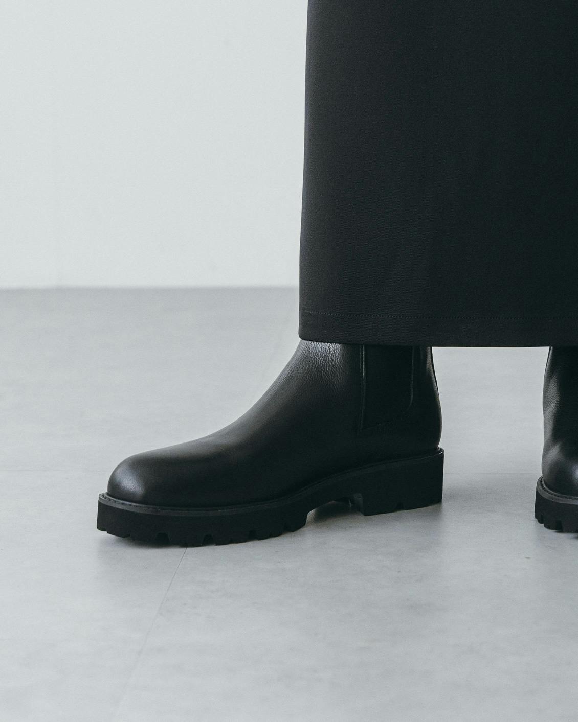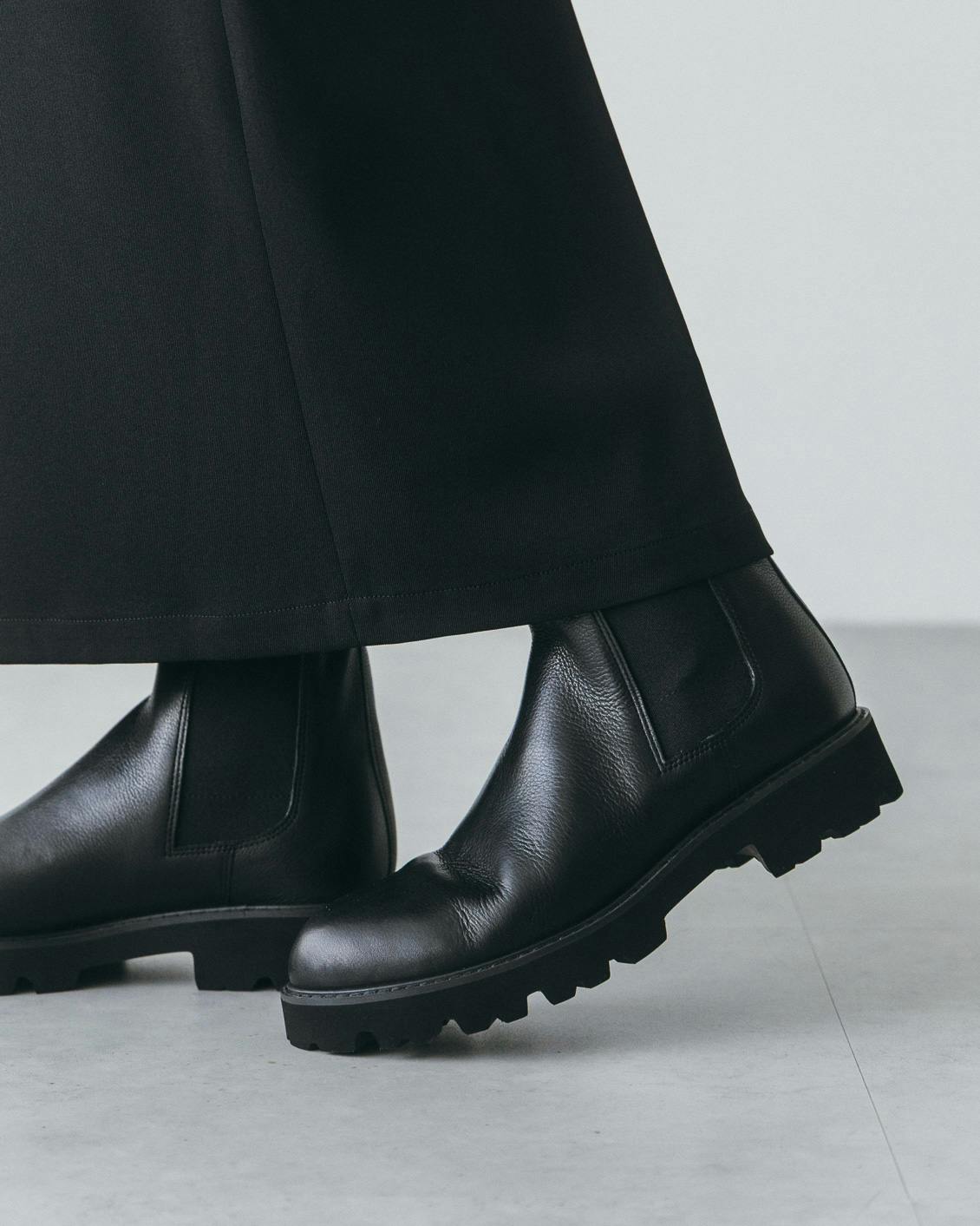 足元にボリュームを持たせるサイドゴアブーツを、パンツスタイルでもすっきり決まるものにできたら、もっと頼れる靴になりそうと形にしたのが、今回お届けするこの一足です。