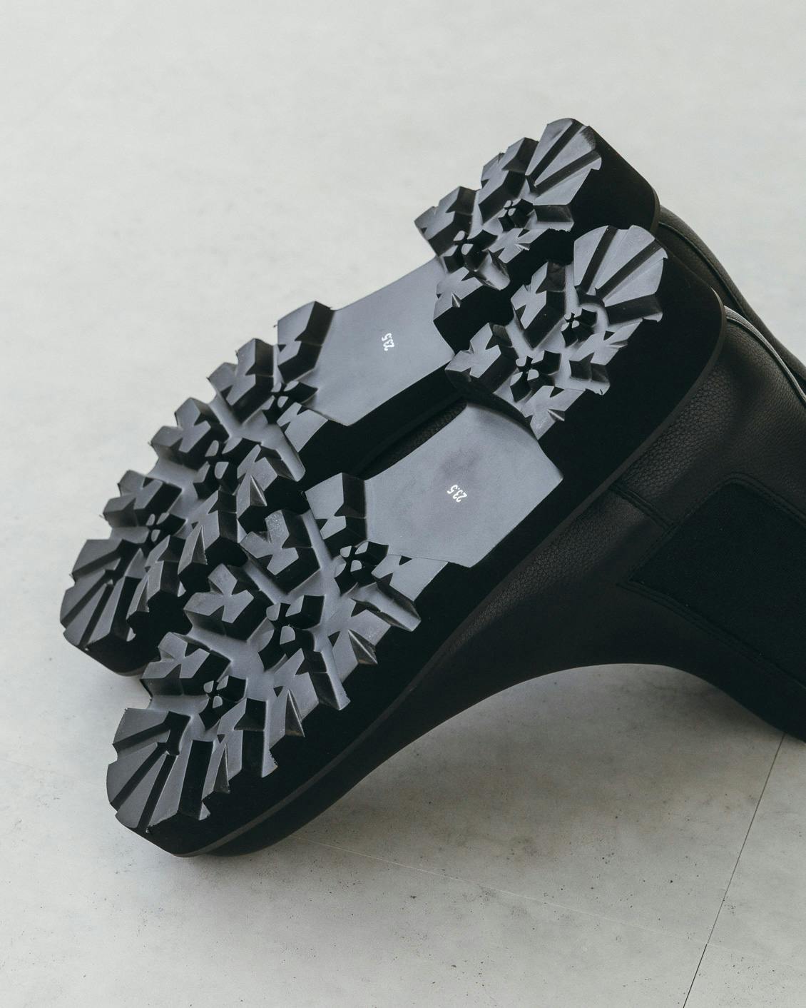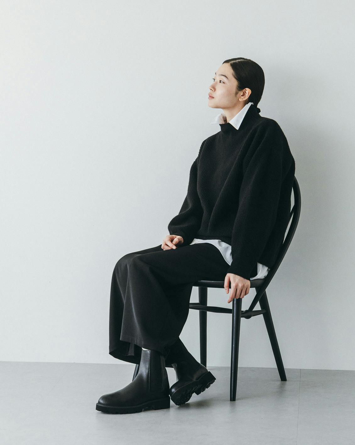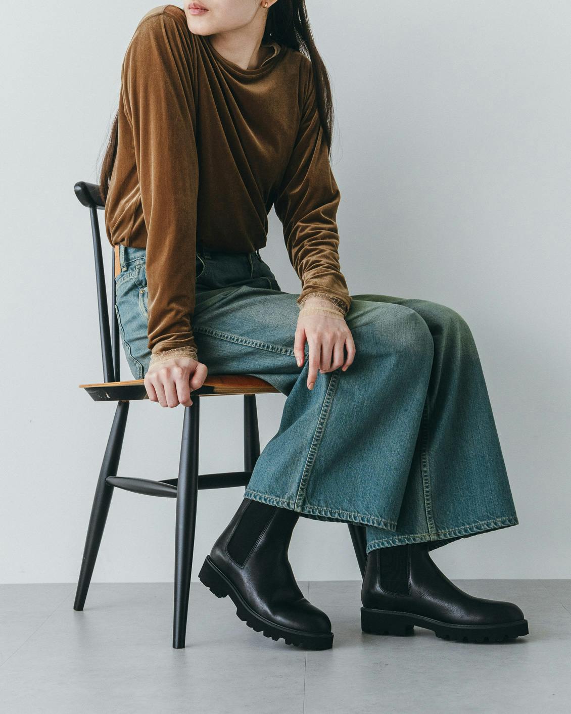 足元にボリュームを持たせるサイドゴアブーツを、パンツスタイルでもすっきり決まるものにできたら、もっと頼れる靴になりそうと形にしたのが、今回お届けするこの一足です。