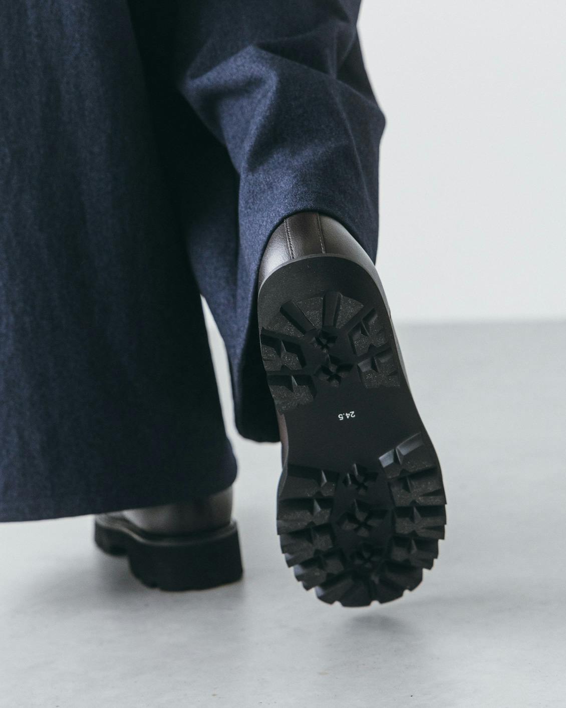 ソールにはボリュームを持たせて、ちょっぴり辛口なマニッシュさを。