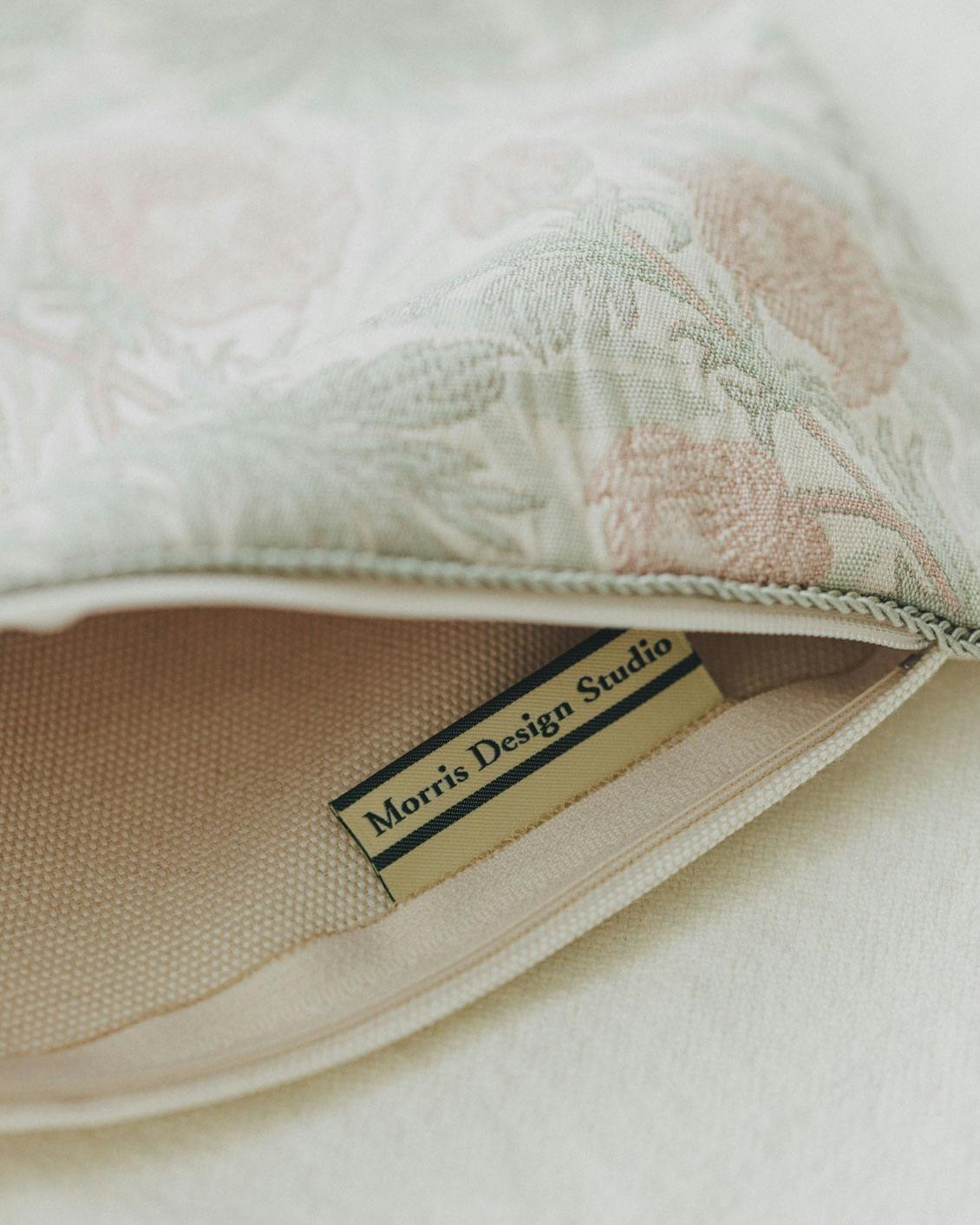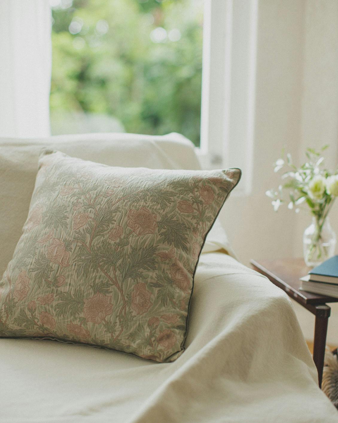 そんな想いを募らせて、今回モリスのテキスタイルを贅沢に使い、お部屋に置くだけで気持ちまで華やぐようなクッションカバーを企画しました。