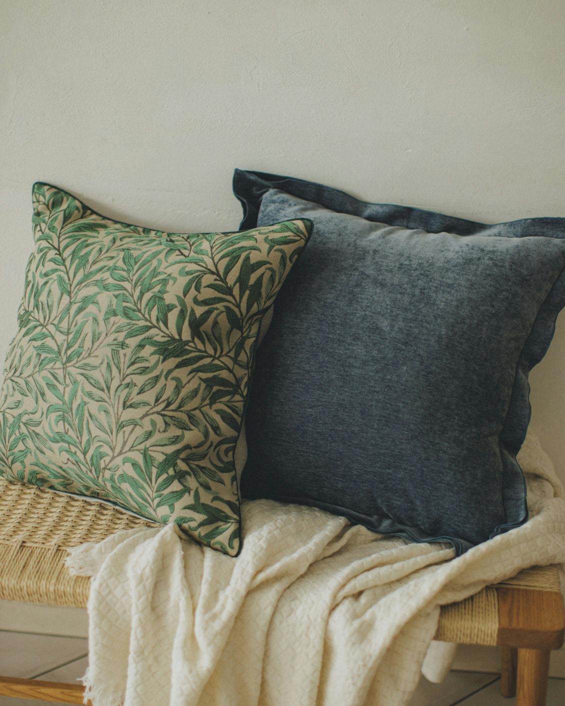 そんな想いを募らせて、今回モリスのテキスタイルを贅沢に使い、お部屋に置くだけで気持ちまで華やぐようなクッションカバーを企画しました。