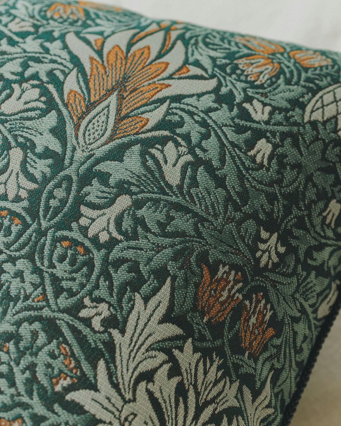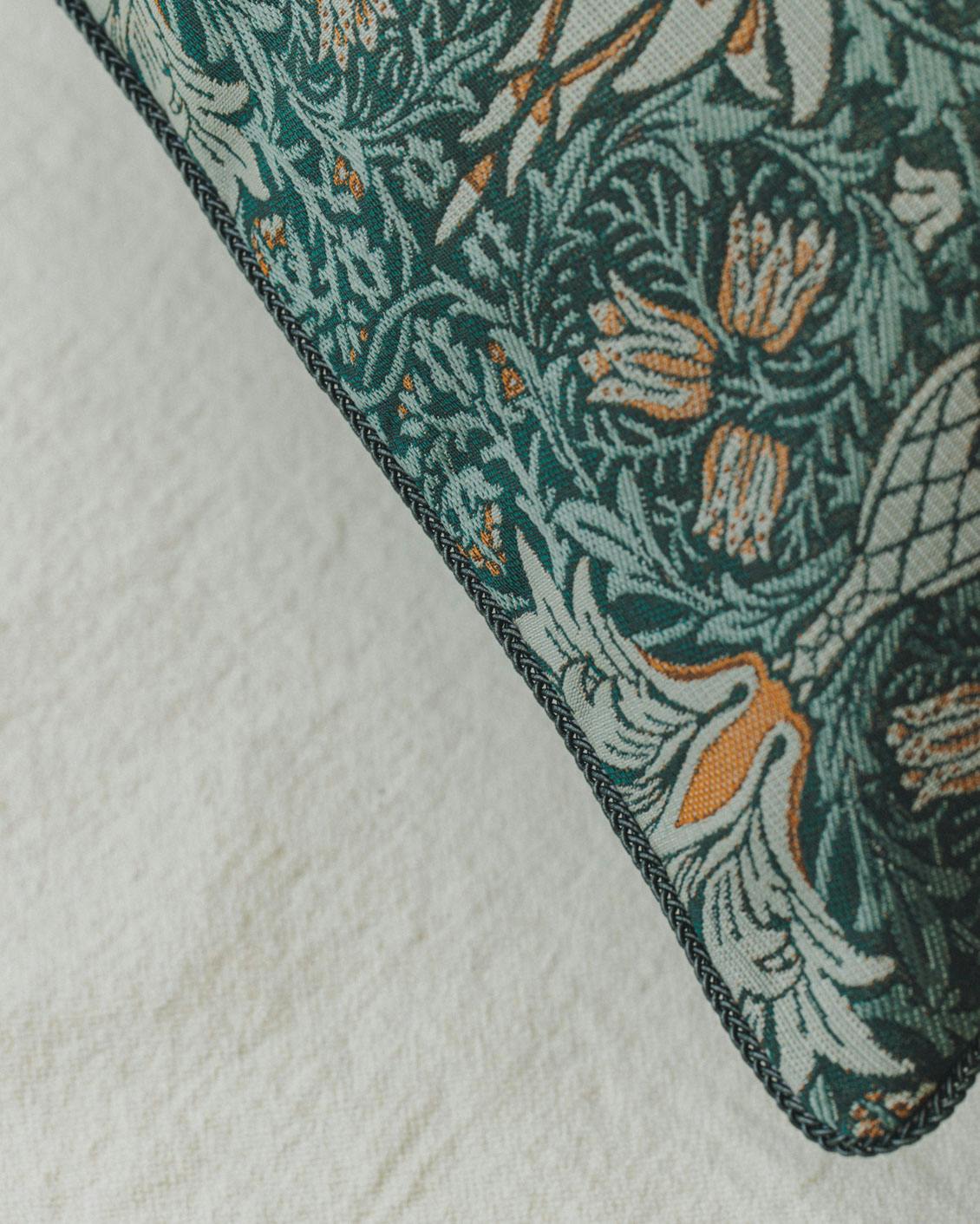 カバーに採用したのは、国内の老舗織物メーカーがモリスのデザインをジャカード織で再現した「Morris Design Studio」のテキスタイル。