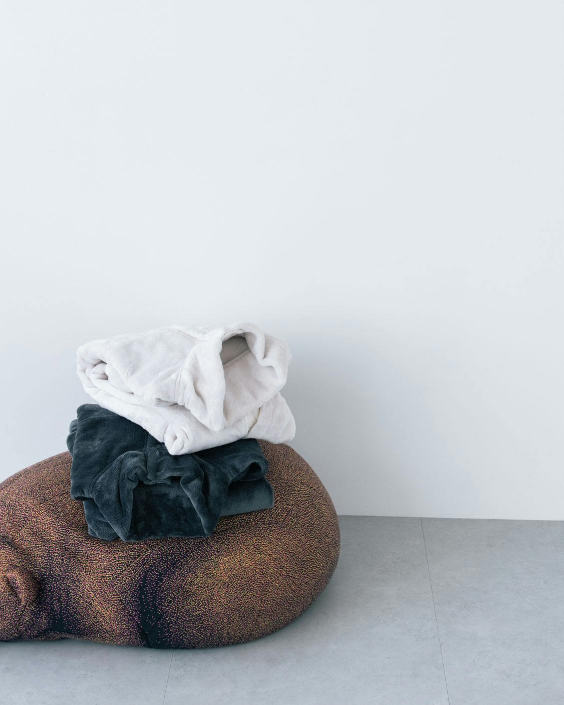 どちらも、脱いで無造作にソファーに置いてあっても、インテリアの一部として絵になる色合いを目指しました。