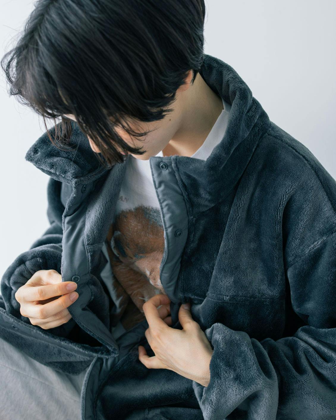 身幅もゆったりとってあるので、ボタンを全部閉じても窮屈感はゼロ。むしろ密着度が高まり、体温を逃さずポカポカに。中の空気をふんわり抱き込んでくれる感覚です。