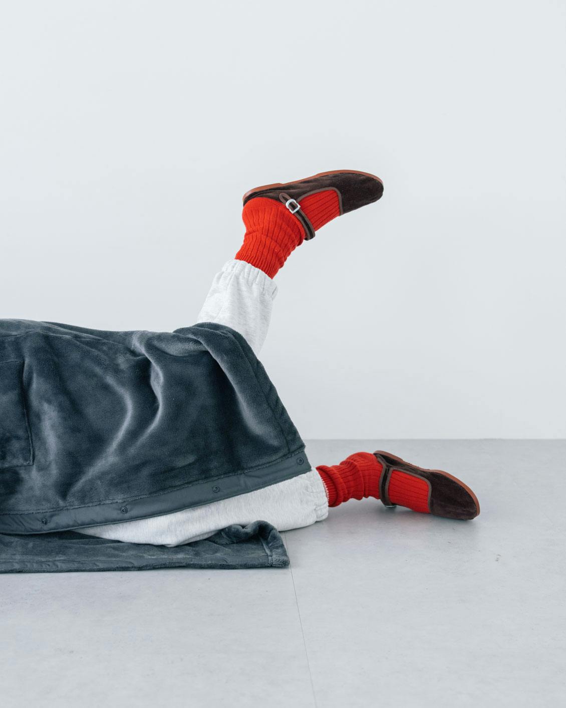 着丈は、座った時に膝まですっぽりと覆ってくれる長さに設定しました。椅子やソファーに座った瞬間、まるでブランケットを掛けたような安心感に包まれます。