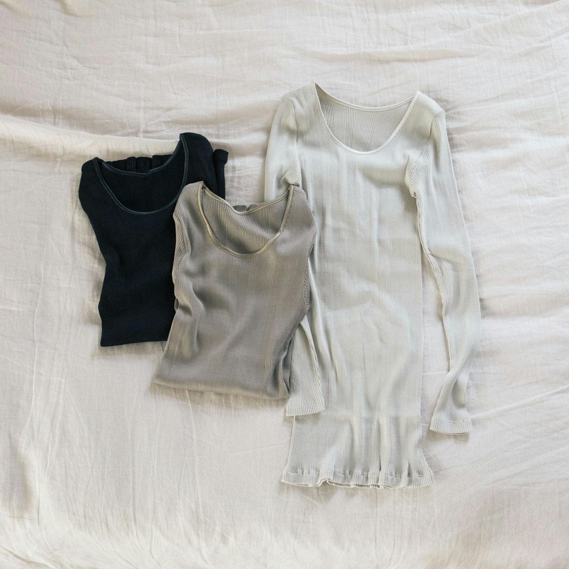 サラサラしっとりな肌触りと、リブならではのフィット感にやみつきになるスタッフも多数。