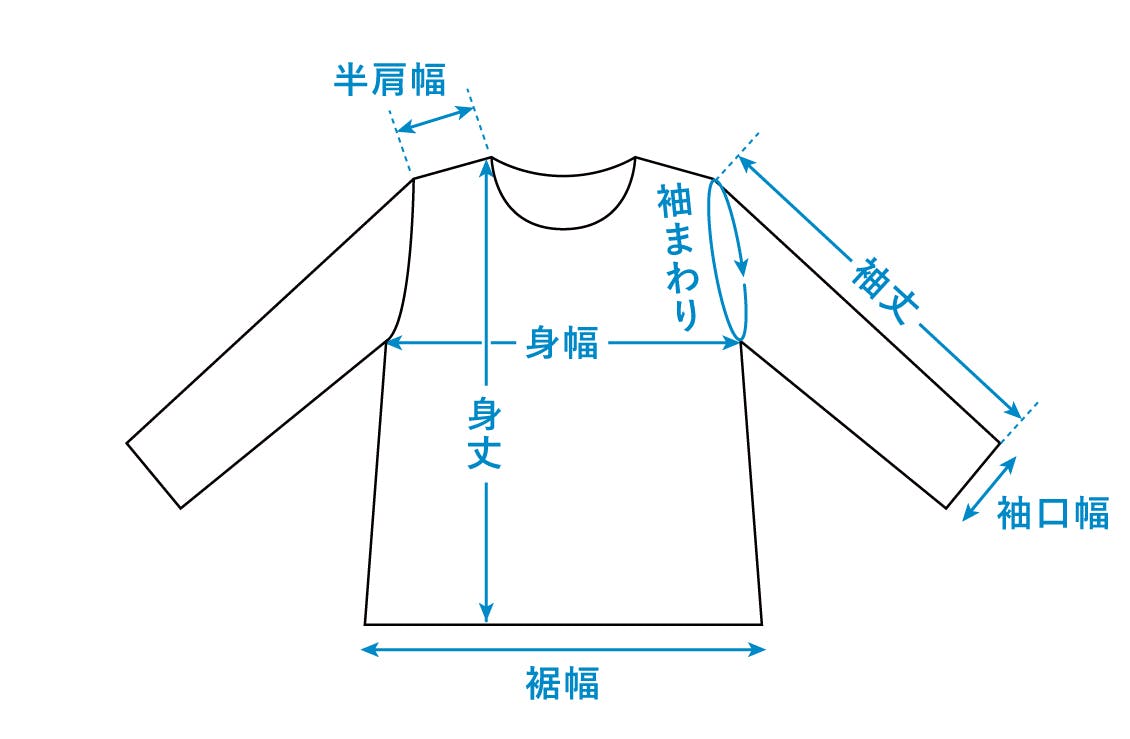 | サイズcm(約) | 身丈:60、身幅:36、裾幅:34、半肩幅:7.5、袖まわり:45.4、袖丈:54、袖口幅:8.5 |