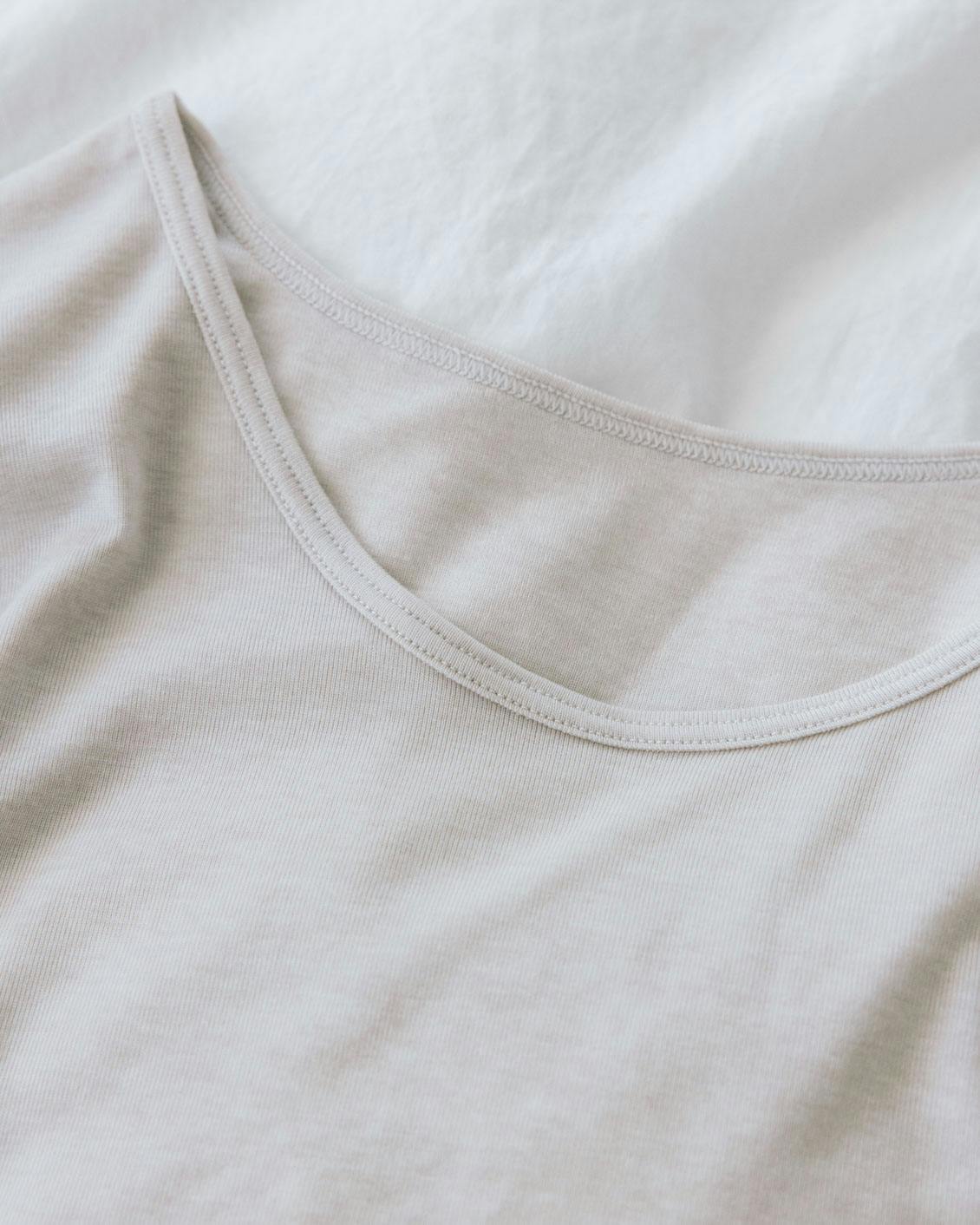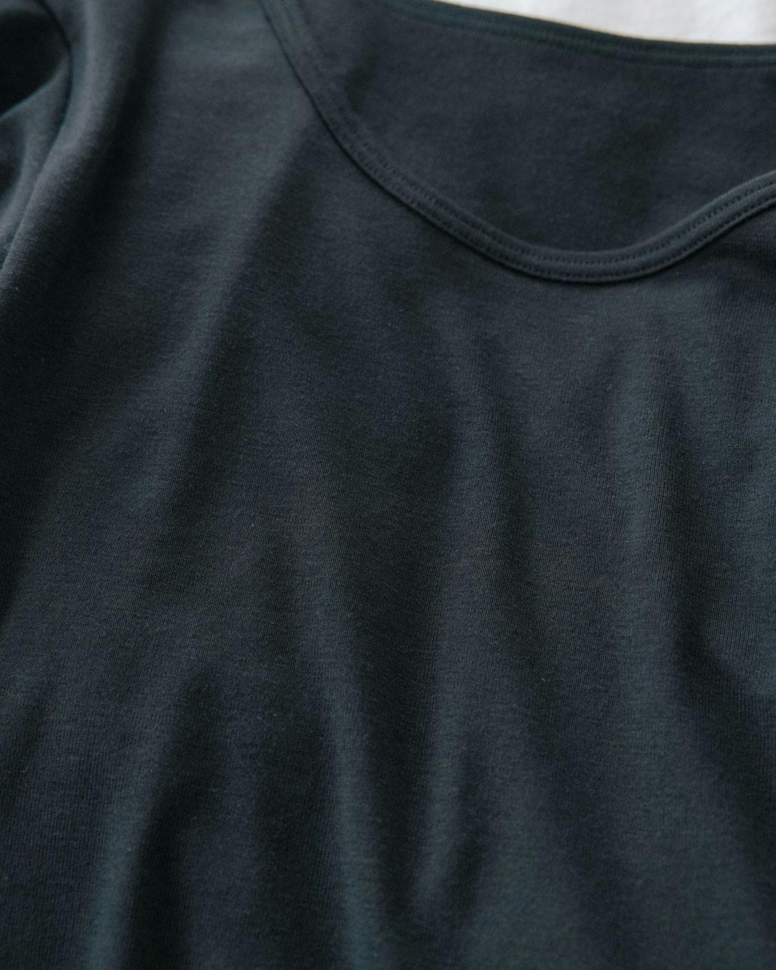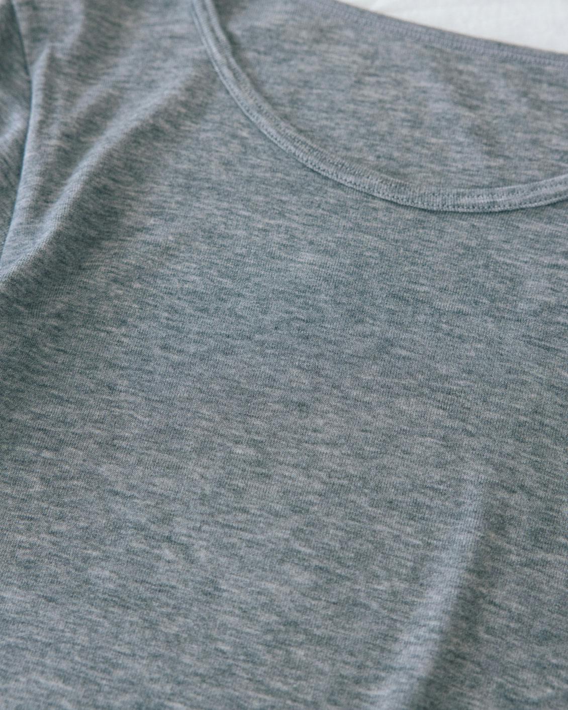 わずかに濃淡のある自然な表情の杢カラーはのっぺり感がなく、薄手のカットソーのような感覚で着られます。
